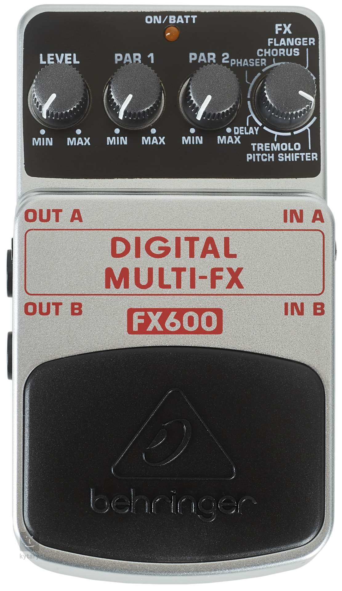Cyfrowy multiefekt z wskaźnikiem włączenia/wyłączenia efektu i wskaźnikiem stanu baterii, zasilanie baterią 9 V lub adapterem DC (nie wchodzi w skład zestawu).