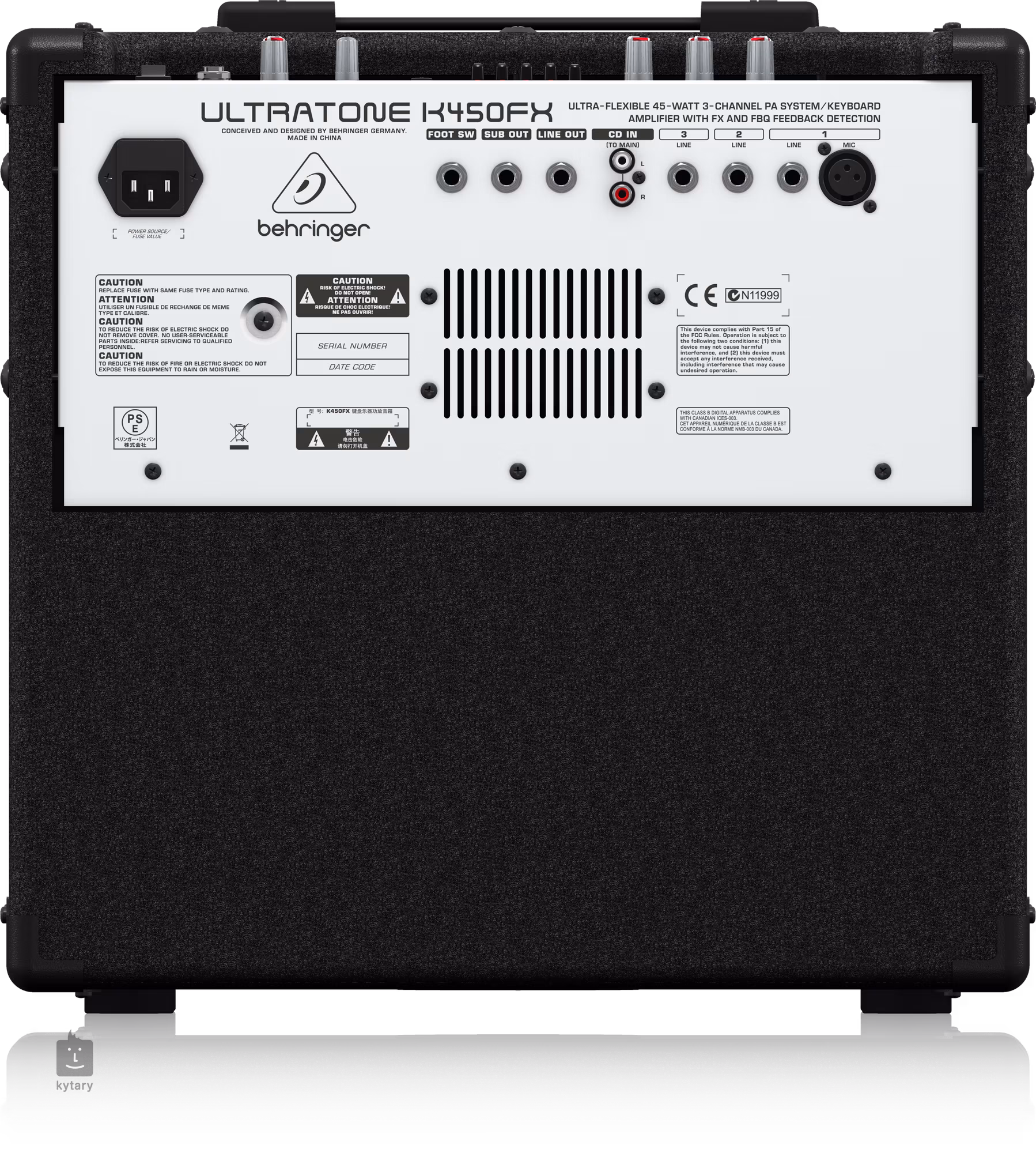 ULTRATONE K450FX specjalizuje się w czystym, mocnym brzmieniu. Ten 45-watowy sprzęt sprawi, że Twoje klawisze zabrzmią najlepiej, jak to tylko możliwe. Rozdziel swój dźwięk na kanały K450FX oferuje trzy kanały, z których każdy ma osobne ustawienia dźwięku i FX SEND, a kanał 1 ma dodatkowo wejście XLR do bezpośredniego podłączenia mikrofonu dynamicznego. Jeśli więc jesteś klawiszowcem, który posiada więcej niż jeden instrument, K450FX pozwoli Ci przetwarzać jednocześnie do trzech niezależnych sygnałów. Jest to również idealne rozwiązanie do jednoczesnego podłączenia klawiszy i wokali. Zintegrowany 24-bitowy cyfrowy procesor efektów z 100 niesamowitymi presetami dodaje do Twojego brzmienia odrobinę hi-tech efektu echa, chóru, flangeru, opóźnienia, harmonizera i różnych innych efektów. Sekcja MAIN umożliwia oddzielną kontrolę FX RETURN, MASTER VOLUME, PHONES i SHAPE. Wejście CD INPUT umożliwia odtwarzanie muzyki nagranej za pomocą K450FX podczas przerw w występie lub po prostu, gdy jesteś sam. Oddzielne wyjście słuchawkowe – idealne do cichej nauki. K450FX posiada również zintegrowane gniazdo 35 mm do montażu na statywie i wykorzystania jako system PA. Duży, piękny BUGERA 10-calowy głośnik niskotonowy BUGERA, w całości wyprodukowany w naszym zakładzie przez naszych utalentowanych rzemieślników, w połączeniu z wykonanym na zamówienie 1,0-calowym głośnikiem wysokotonowym zapewnia niesamowity dźwięk w całym zakresie. K450FX posiada również wyjście dla subwoofera oraz wyjście do bezpośredniego podłączenia linii do miksera. Dźwięk z korektorem i bez sprzężenia zwrotnego Użyj K450FX, aby dopracować swój dźwięk za pomocą 5-pasmowego korektora graficznego z naszym własnym systemem ochrony przed sprzężeniem zwrotnym FBQ. To niesamowite narzędzie dźwiękowe natychmiast wskazuje częstotliwości powodujące sprzężenie zwrotne, dzięki czemu w każdej chwili uzyskasz idealny dźwięk. Kluczem jest ULTRATONE K450FX to piękne połączenie wszechstronności, doskonałego brzmienia i trwałości. Wypróbuj go u najbliższego sprzedawcy BEHRINGER i przekonaj się, co ten pracowity sprzęt może zrobić dla Twojego brzmienia.