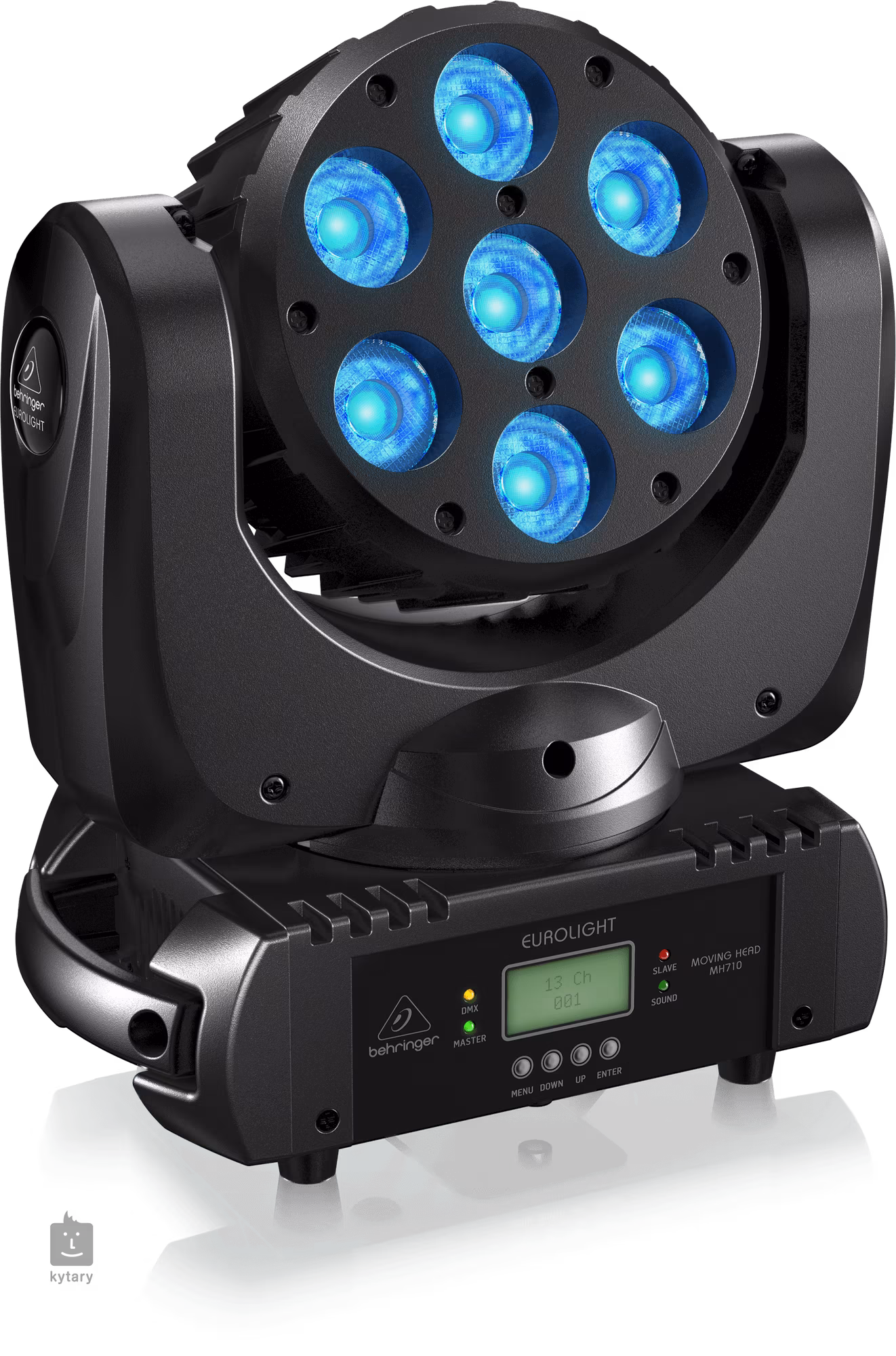 Obrotowa głowica Behringer MOVING HEAD MH710 została zaprojektowana z myślą o szerokim spektrum zastosowań, niezależnie od tego, czy potrzebujesz oświetlić scenę koncertową, klub muzyczny, scenę teatralną, dyskotekę czy inne wydarzenie. Jest to profesjonalna lampa wyposażona w siedem diod LED CREE o mocy 10 W typu RGBW (4 w 1), które zapewniają bogate możliwości mieszania w celu uzyskania szerokiej gamy odcieni kolorów. Wynikowe światło będzie skupione w wąskim promieniu o kącie emisji 15°, co zapewni jasny i skoncentrowany strumień światła. Urządzenie może również tworzyć efekt stroboskopowy. Oczywistą rzeczą jest ruchomość w kierunkach Pan (630°) i Tilt (220°). Wszystkie funkcje można sterować za pomocą standardowego protokołu DMX512 z dwoma trybami kanałowymi (9, 13), programami automatycznymi, programami sterowanymi dźwiękiem lub pilotem na podczerwień. Dostępny jest również tryb Master/Slave. Do ręcznej regulacji służy panel sterowania z wyświetlaczem LCD i przyciskami. Urządzenie jest wyposażone w 3-pinowe złącza DMX (In/Out) i złącza zasilające IEC. Dzięki kompaktowym wymiarom i niewielkiej wadze (314 x 268 x 167 mm, 4,9 kg) można go również wykorzystać jako urządzenie mobilne, co docenią zwłaszcza podróżujący DJ-e, zespoły muzyczne i mobilni oświetleniowcy.