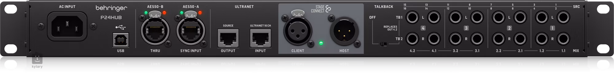 Behringer P24HUB to rozgałęźnik z serii StageConnect przeznaczony do osobistych mikserów monitorujących.