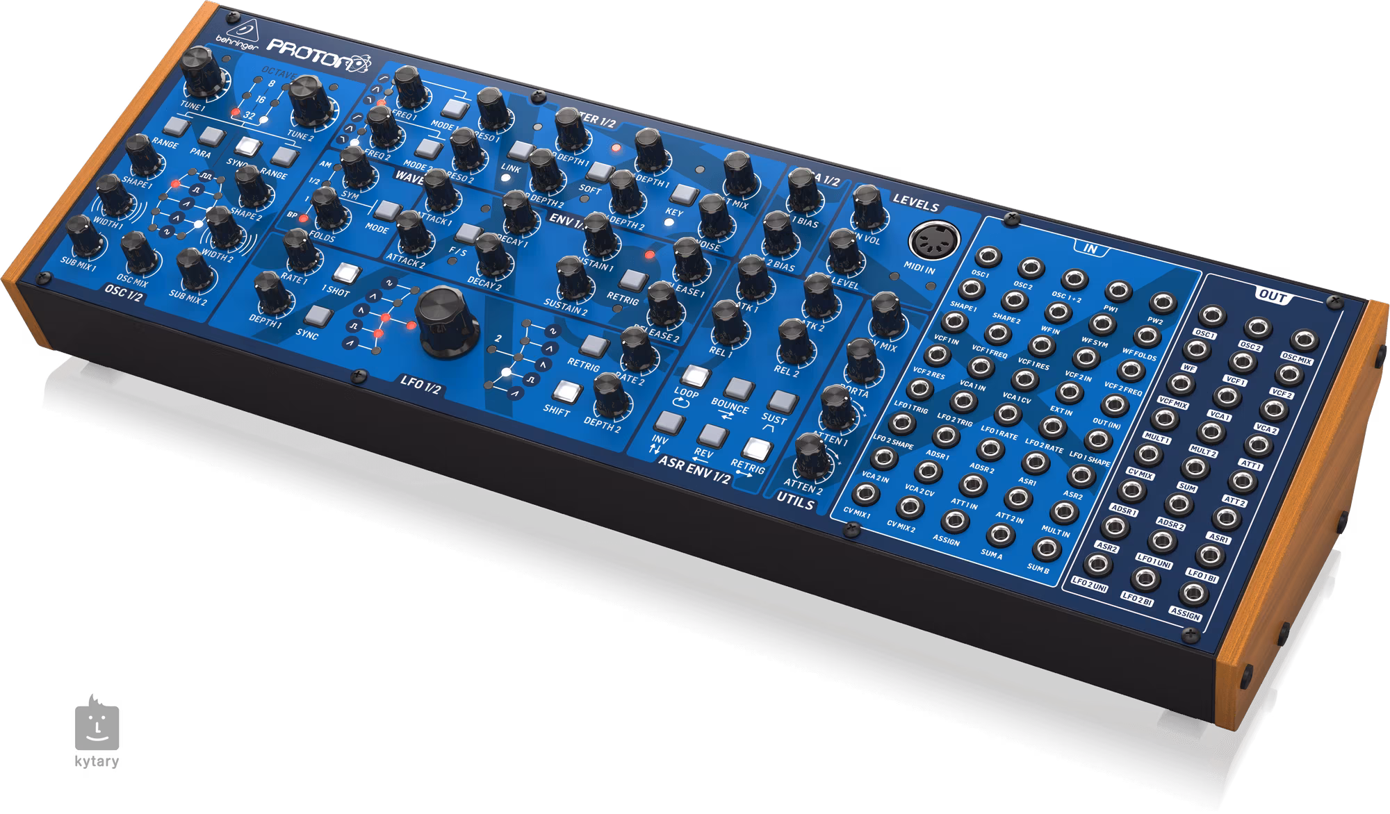 Behringer Proton to analogowy parafoniczny syntezator półmodularny z 2 VCO, 2 wielotrybowymi VCF i 2 VCA, 4 obwiedniami i Wave Folder w formacie Eurorack.