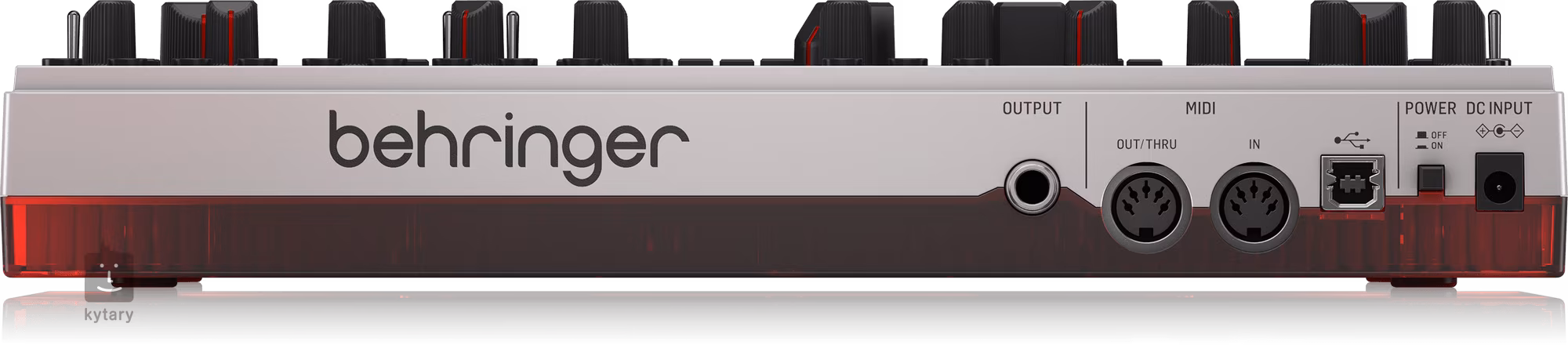 Gniazdo, kolejne gniazdo, a potem... Druga część TD-3 to prosty panel złączy do łączenia z innymi syntezatorami i modułami. Wszystkie złącza są jasno opisane i dostępne są 2 złącza In x 2 Out oraz wyjście słuchawkowe do szczegółowego monitorowania. Tylny panel zawiera wyjście liniowe, złącza MIDI i port USB do podłączenia do komputera.