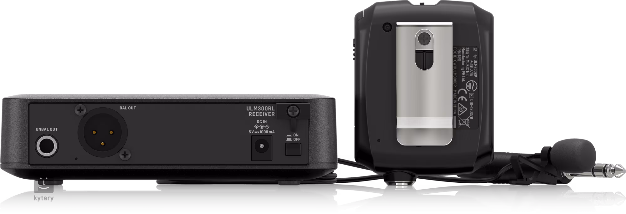 Behringer UL M300LAV to wysokowydajny cyfrowy system bezprzewodowy 2,4 GHz zawierający mikrofon klapowy, nadajnik i odbiornik.