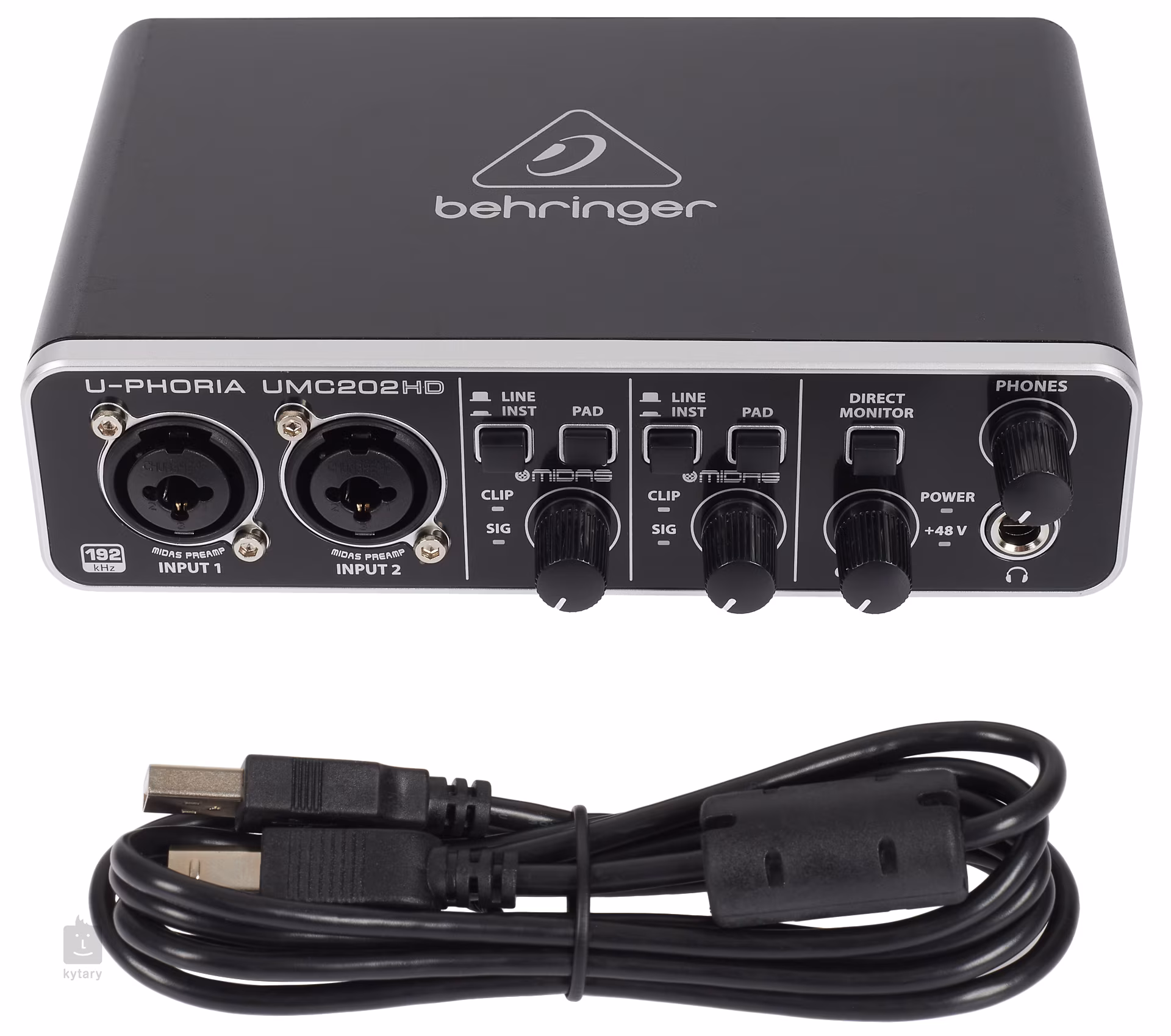 Karta dźwiękowa jest kompatybilna z większością oprogramowania DAW, wtyczek lub instrumentów wirtualnych. Z przodu znajdują się dwa wejścia mikrofonowe lub instrumentalne, wyposażone w wysokiej jakości przedwzmacniacz mikrofonowy MIDAS o dużym zakresie dynamiki. Każdy kanał posiada regulację głośności, przełączniki Line/Inst, PAD oraz diody CLIP/SIC dla maksymalnej kontroli. Wyjście słuchawkowe z oddzielną regulacją głośności umożliwia szczegółowy monitoring lub nocną sesję nagraniową. Tylny panel kryje wyjścia stereo do monitorów studyjnych, przełącznik zasilania phantom oraz port USB do podłączenia komputera lub laptopa.