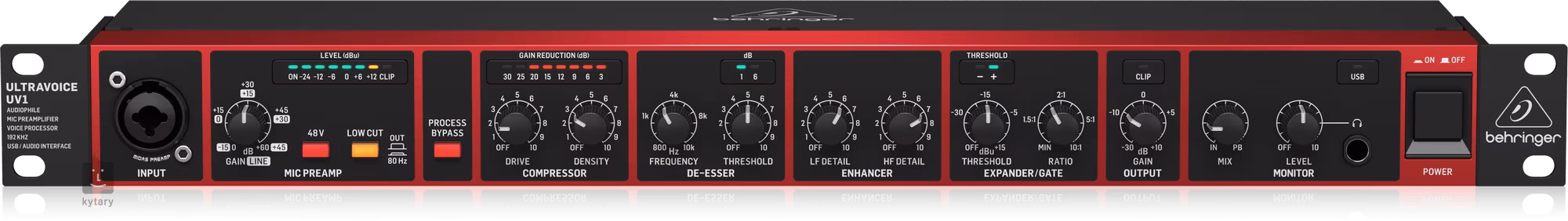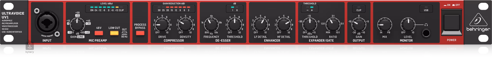 Jeśli chodzi o wokale, inżynierowie dźwięku są krytyczni i często wolą zewnętrzny channel strip wyższej jakości niż ścieżkę sygnału konsoli mikserskiej. ULTRAVOICE UV1 to w pełni funkcjonalny channel strip z najwyższej klasy przedwzmacniaczem mikrofonowym MIDAS i zasilaniem phantom +48V (XLR), ultra niskim poziomem szumów i wysokim wzmocnieniem. ULTRAVOICE UV1 jest również wyposażony w kompletny channel strip, który zawiera: Compressor dla dodatkowego punchu, De-Esser do usuwania syczenia, Enhancer do przetwarzania szczegółów audio w dolnej i górnej części spektrum częstotliwości oraz Expander/Gate do automatycznego "wyciszania" niepożądanych składowych sygnału i Gain do wyrównywania głośności wyjściowej. Alternatywnie, istnieje również możliwość wykorzystania złączy insertowych (2 x Jack 6,3 mm) do zewnętrznego podłączenia dowolnego procesora sygnałowego. Przetworzony dźwięk można przesłać dalej za pośrednictwem zbalansowanych wyjść analogowych XLR lub Jack 6,3 mm lub nagrać w programie DAW za pośrednictwem wewnętrznego interfejsu USB.
