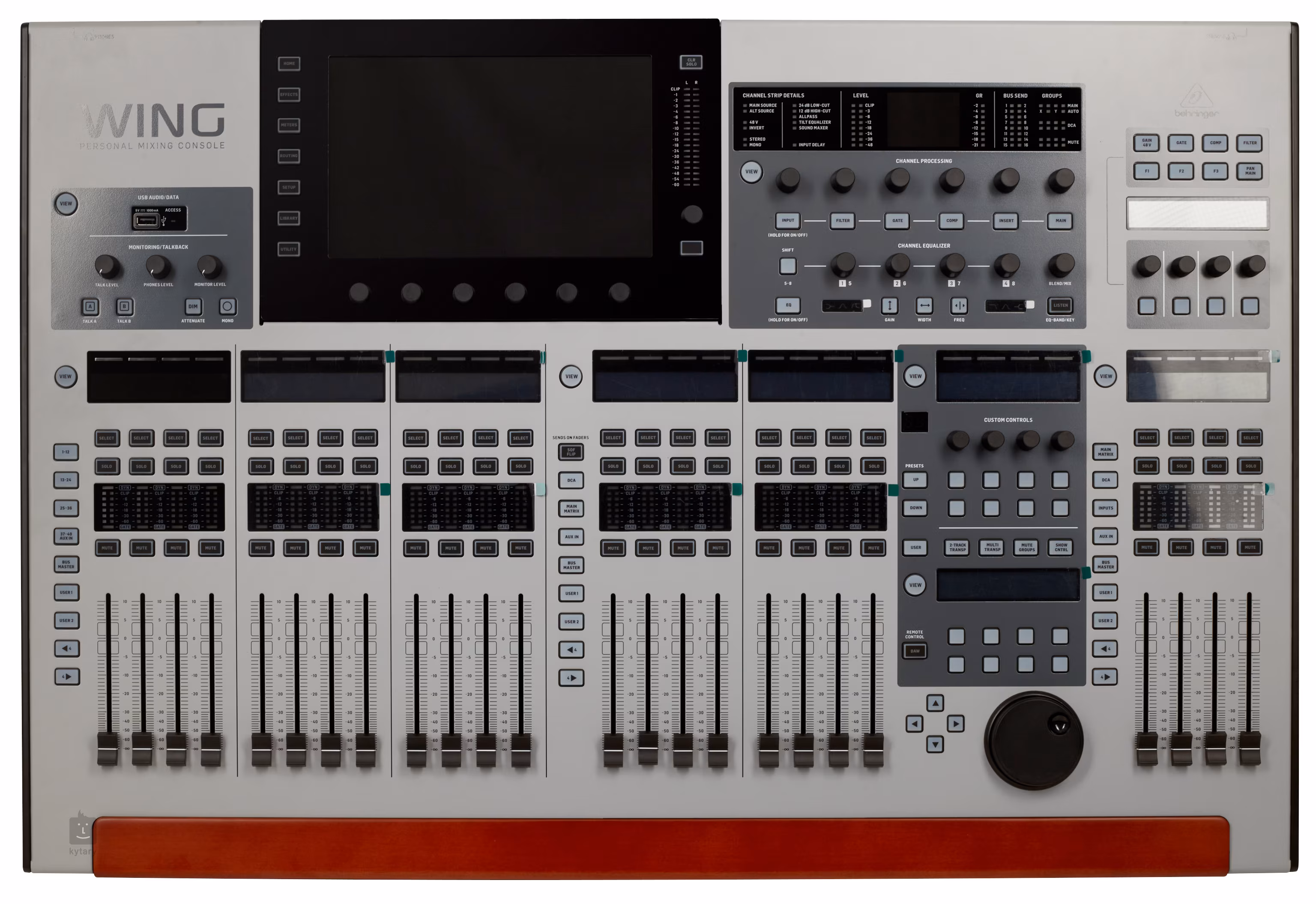Behringer Wing to 48-kanałowa cyfrowa konsola mikserska z 28 szynami stereo, 8 przedwzmacniaczami mikrofonowymi Midas PRO i 8 wyjściami Midas PRO, 10,1-calowym ekranem dotykowym i 24 zmotoryzowanymi 100-milimetrowymi suwakami.