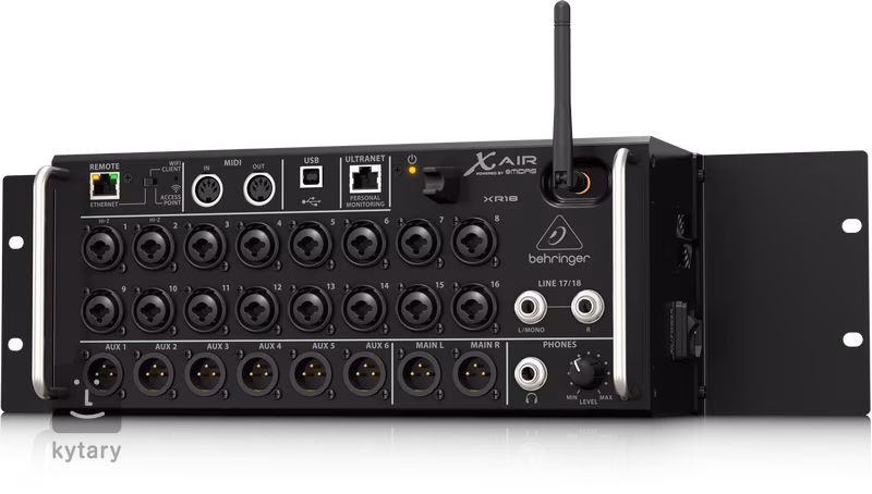 Behringer X Air XR 18 to cyfrowa konsola mikserska z możliwością sterowania za pomocą aplikacji na iPada lub tablet z systemem Android. Posiada 18 kanałów, 16 przedwzmacniaczy MIDAS, 12 magistral, kartę dźwiękową USB 18x18 oraz wbudowany moduł Wi-Fi.