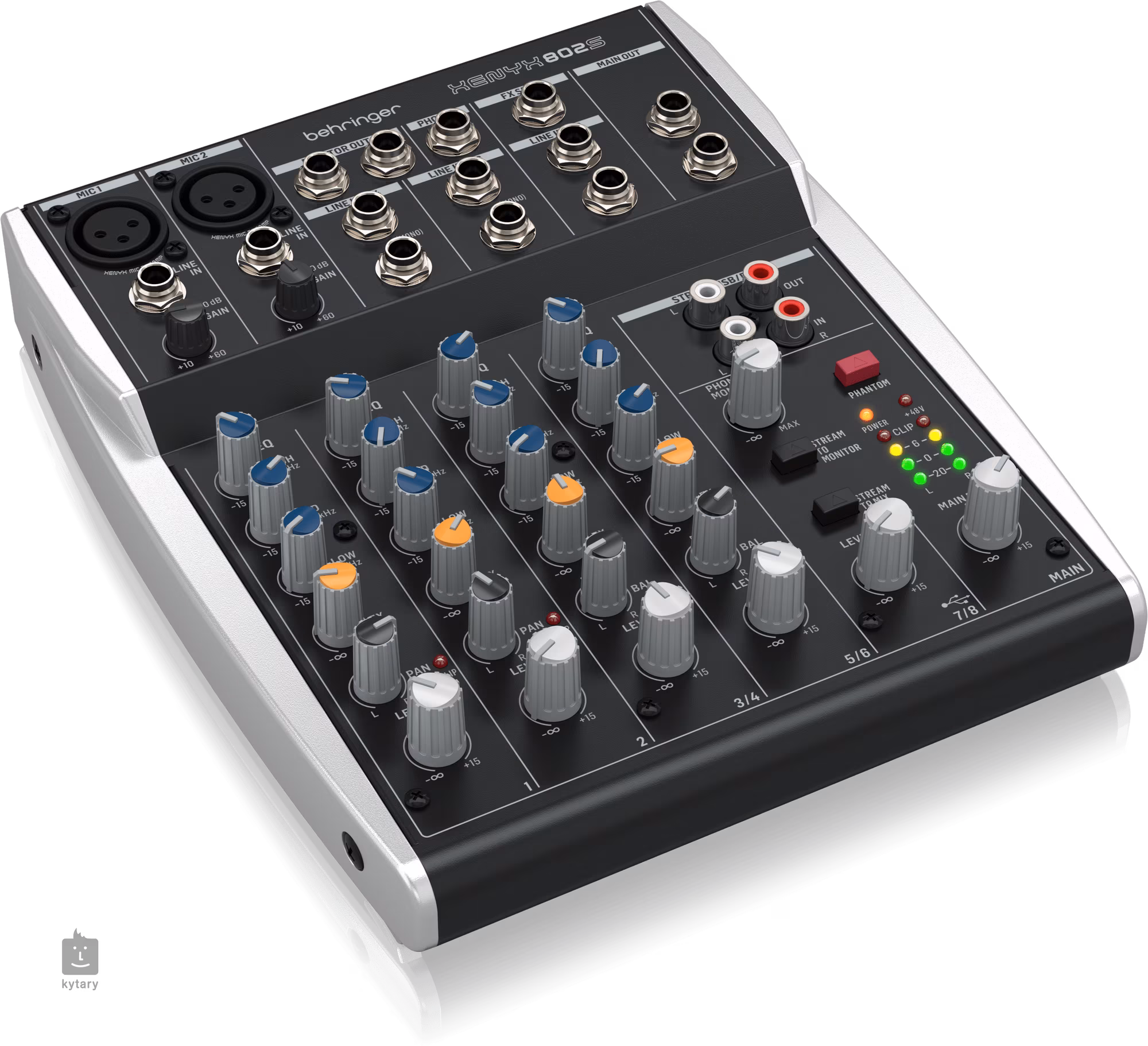 Behringer XENYX 802S to analogowa konsola mikserska odpowiednia do streamingu, podcastingu lub nagrywania. Posiada dwa kanały mono i trzy kanały stereo (dwa z korektorem), ciepły i muzykalny dźwięk przedwzmacniaczy mikrofonowych XENYX, stereofoniczny interfejs audio USB do podłączenia do komputera i urządzeń mobilnych, trzypasmowy korektor, bezpośrednie miksowanie dźwięków z komputera / gier ze stereofonicznego wyjścia strumieniowego RCA, stereofoniczne wejście RCA, które można przypisać do głównego miksu/wyjścia lub wyjść słuchawkowych/monitorowych, stereofoniczny kanał 7/8 automatycznie przełączający się między wejściem TRS i odtwarzaniem USB oraz sterowanie wysyłaniem FX dla zewnętrznych procesorów efektów/monitoringu miksu.