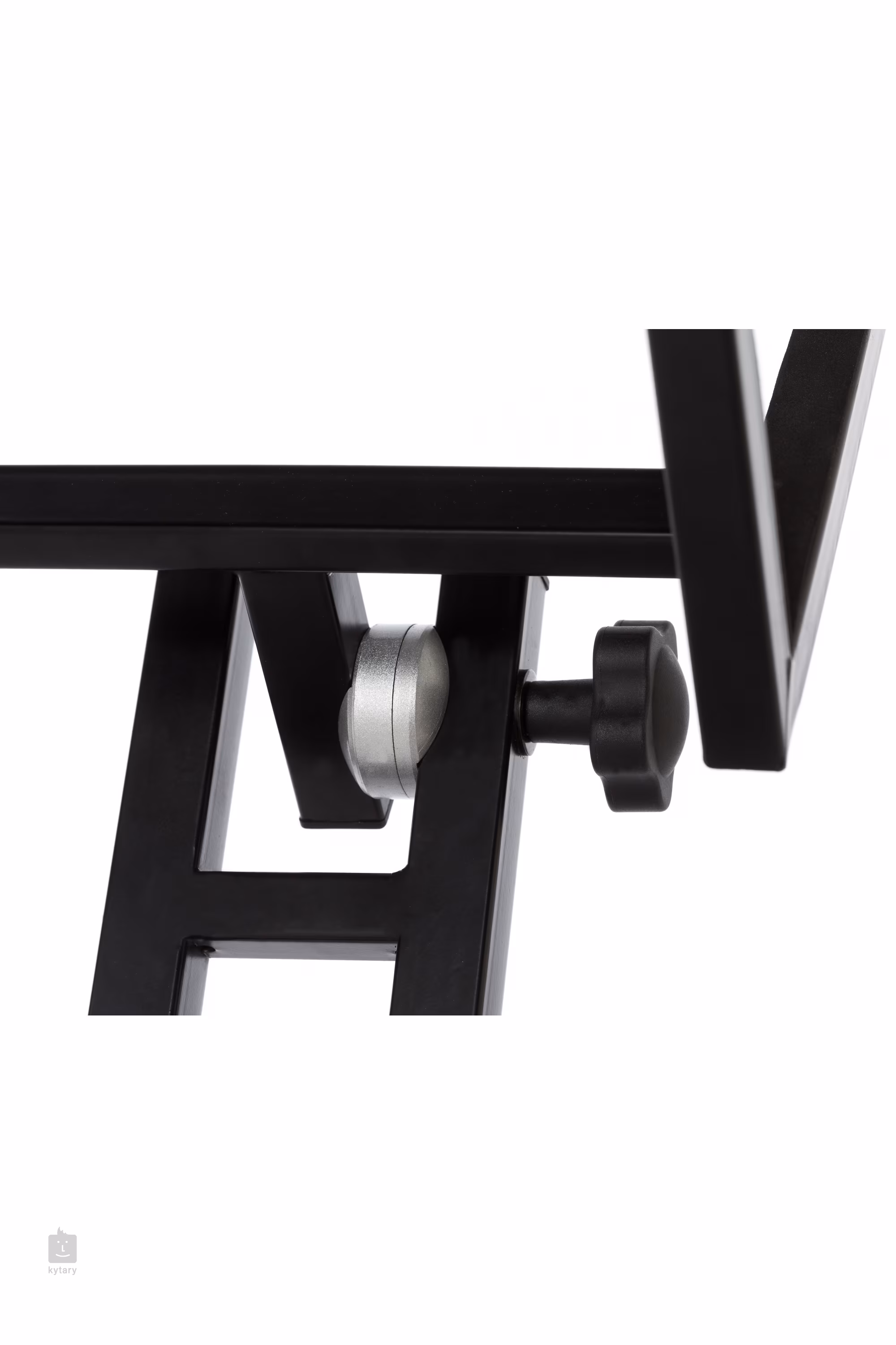 Solidny stalowy stojak z regulowaną wysokością i nachyleniem, odpowiedni dla bardziej kompaktowych konsolet mikserskich. Może być również używany jako podstawka pod wzmacniacz gitarowy/basowy. Nogi stojaka pokryte są gumowanym, antypoślizgowym materiałem. Rozstaw ramion wynosi 30 cm.