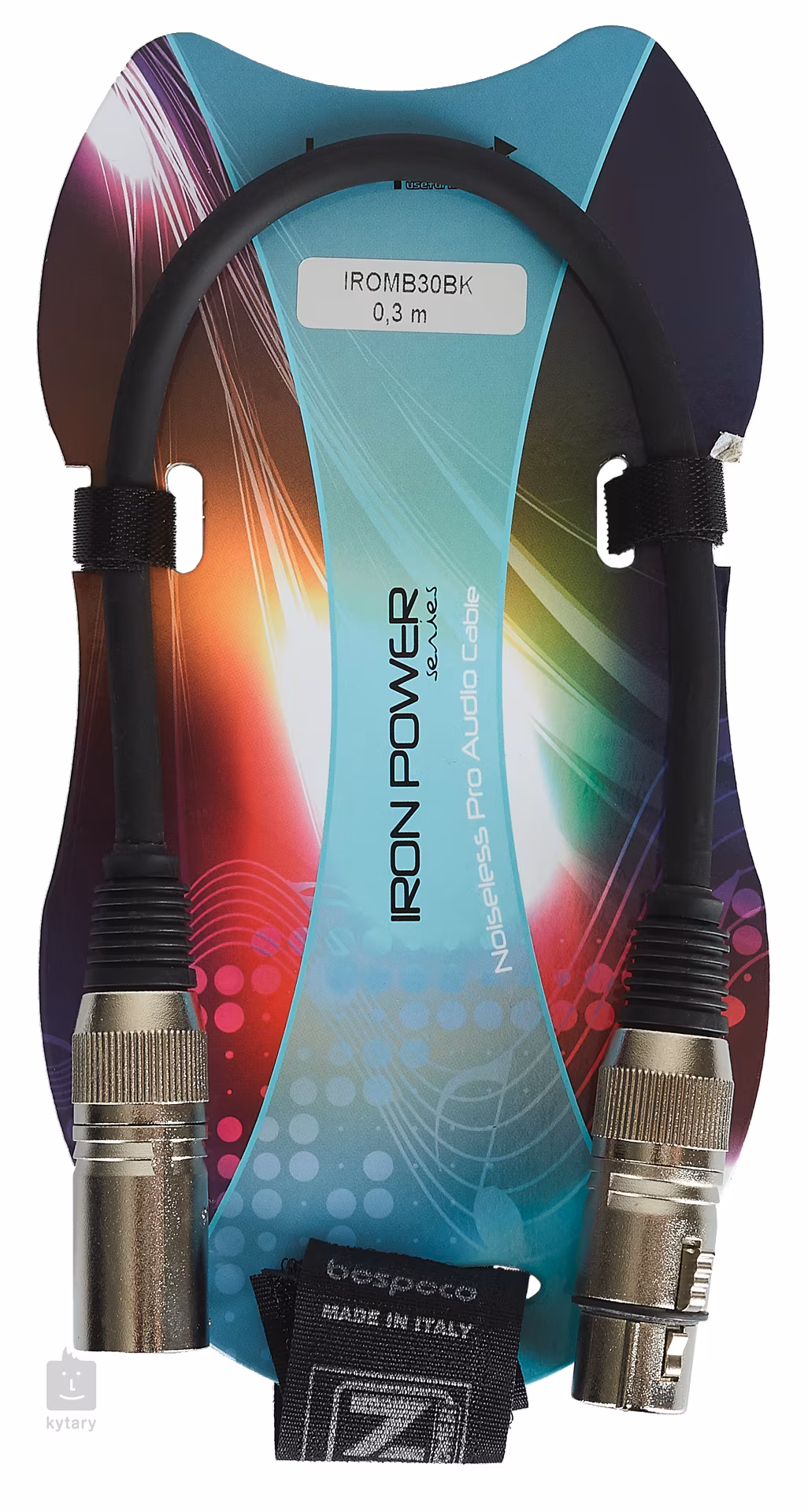 Kabel mikrofonowy Bespeco z serii Iron. Wnętrze kabla wykonane jest w 98% z miedzi OFC, złącza z wytrzymałej stali, a powierzchnia z bardzo wytrzymałego PVC dla maksymalnej elastyczności i długiej żywotności. Do zestawu dołączona jest para pasków na rzepy ułatwiających transport.