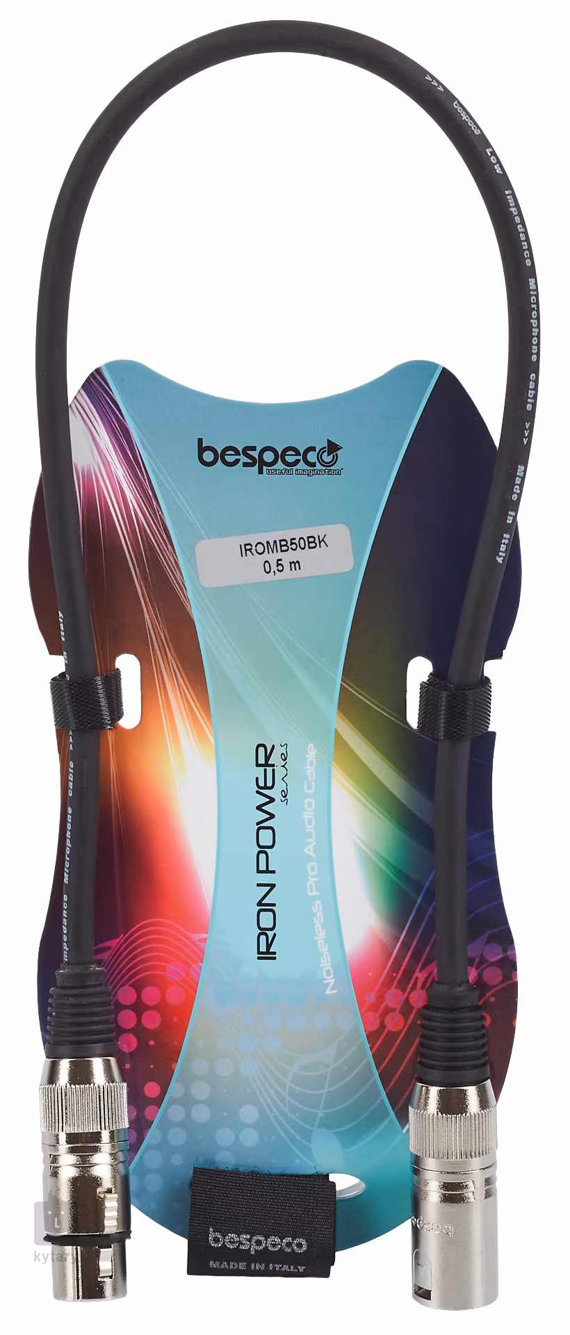 Kabel mikrofonowy Bespeco z serii Iron. Wnętrze kabla wykonane jest w 98% z miedzi OFC, złącza z wytrzymałej stali, a powierzchnia z bardzo wytrzymałego PVC dla maksymalnej elastyczności i długiej żywotności. Do zestawu dołączona jest para pasków na rzepy ułatwiających transport.
