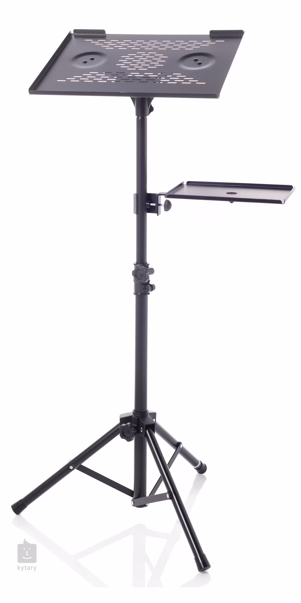 Nie wiesz, gdzie umieścić laptopa na scenie? Ten kompaktowy, uniwersalny stojak rozwiąże Twoje problemy. Stojak jest również wyposażony w dodatkową półkę odpowiednią do umieszczenia dodatkowego sprzętu lub, na przykład, myszy do laptopa. Wymiary dodatkowej półki: 25 x 20 cm.