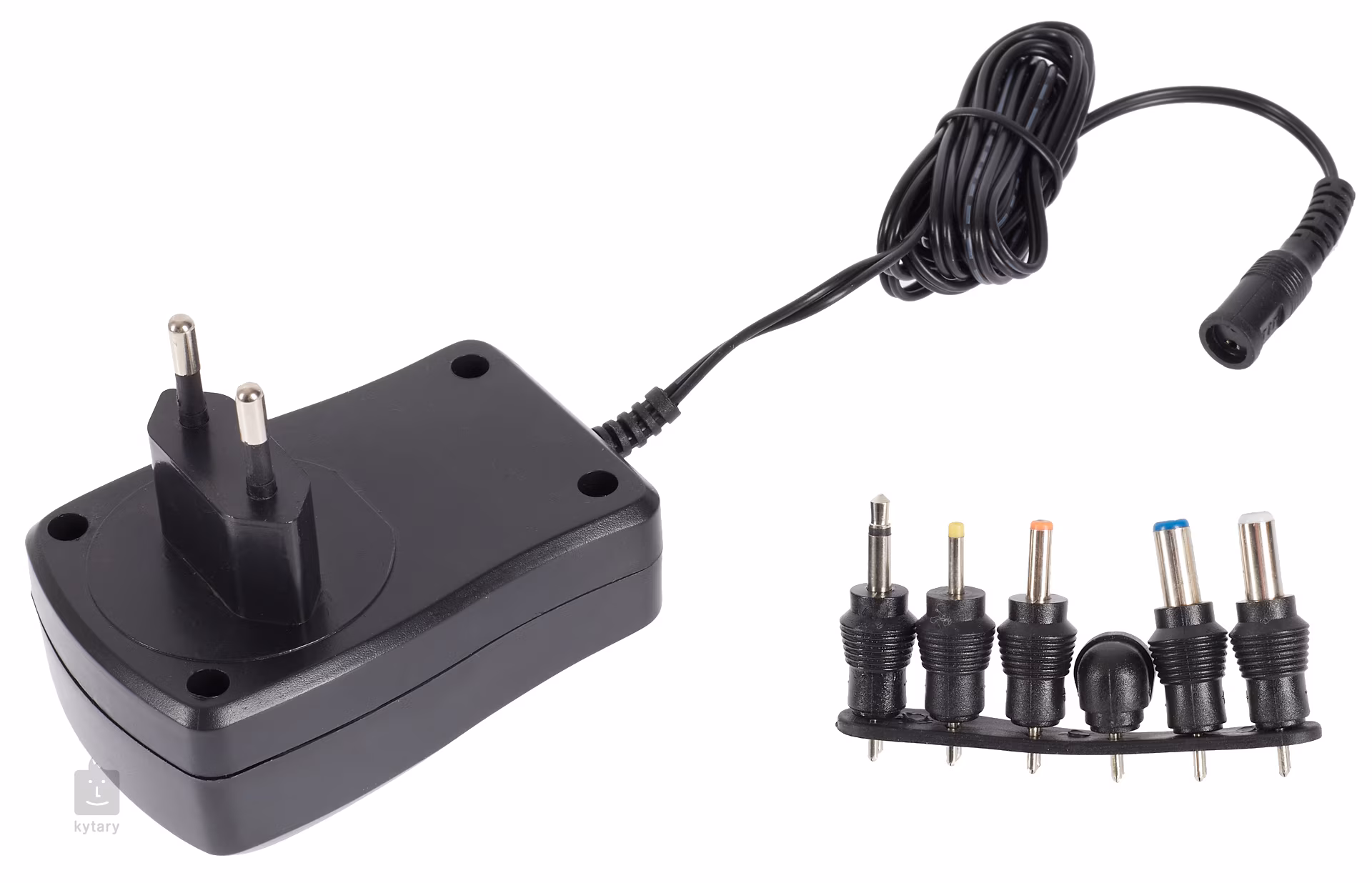 Uniwersalny zasilacz sieciowy z regulowanym napięciem (3 / 4,5 / 6 / 7,5 / 9 / 12 V), prądem 1000 mA, przełączaną polaryzacją i wymiennymi końcówkami. Posiada kabel o długości 1,5 m i nadaje się do telewizorów, radioodbiorników, odtwarzaczy CD, zabawek, kalkulatorów, telefonów itp. oraz instrumentów muzycznych.