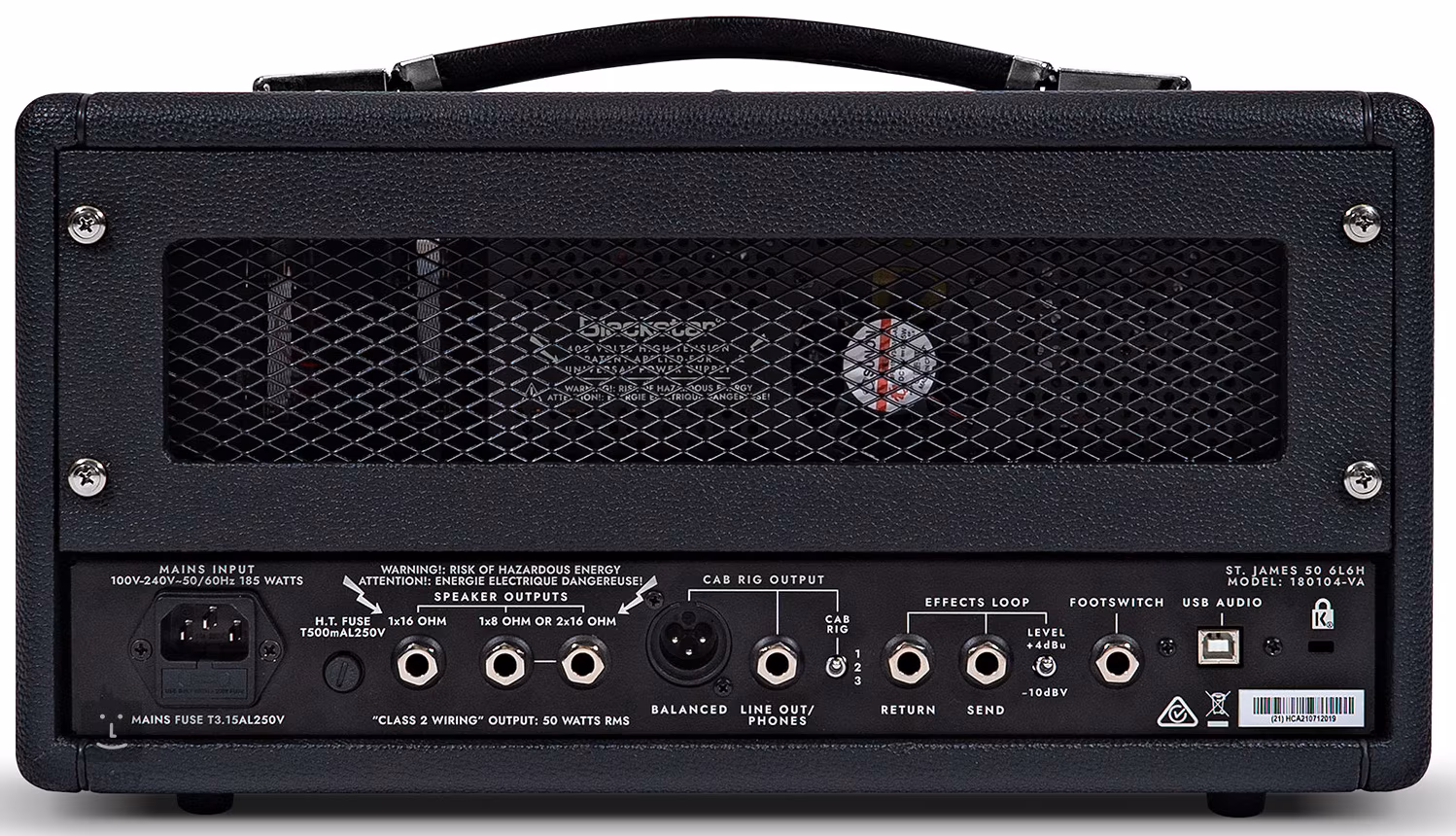 Panel tylny oferuje trzy wyjścia do zewnętrznych kolumn głośnikowych (1x 16, 1x 8, 2x 16 omów), pętlę efektów do integracji ulubionych efektów, złącze do dołączonego przełącznika nożnego (przełączanie między kanałami i brzmieniami drugiego kanału), interfejs USB (typ B) do podłączenia do komputera PC/Mac i oprogramowania Cab Rig, symetryczne wyjście XLR DI z symulacją Cab Rig, stereofoniczne wyjście liniowe/słuchawkowe z symulacją Cab Rig oraz przełącznik między trzema aktualnymi ustawieniami symulacji głośników Cab Rig DSP.