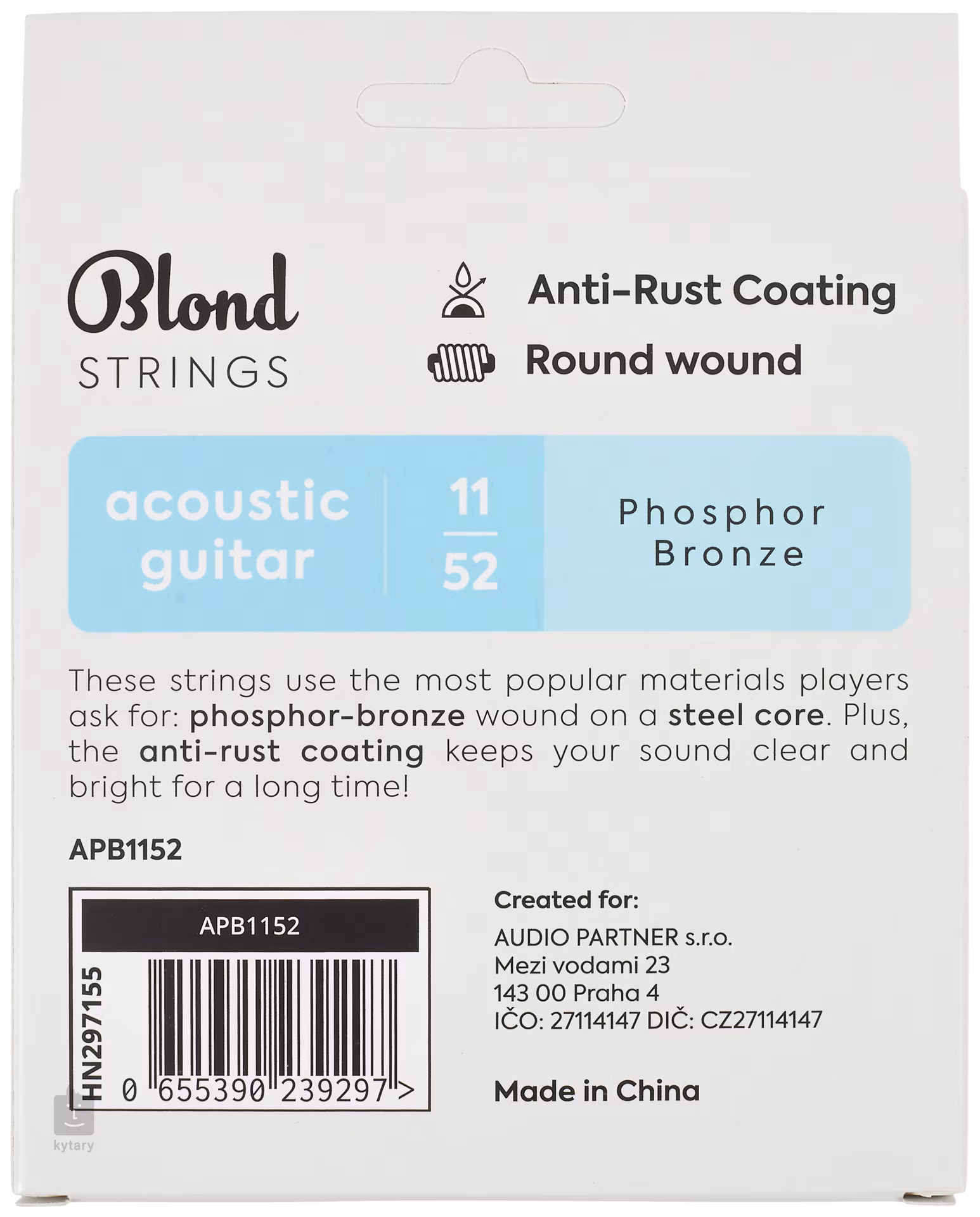 Struny Blond APB1152 to idealny wybór dla gitarzystów akustycznych poszukujących zrównoważonego brzmienia, długiej żywotności i przyjemnych wrażeń podczas gry. Ten zestaw o grubości 11–52 wykonany jest z popularnego materiału, jakim jest fosforowy brąz, który zapewnia naturalnie ciepłe, a jednocześnie wyraźne brzmienie z bogatymi alikwotami. Struny są ponadto pokryte specjalną powłoką antykorozyjną, która zapobiega rdzewieniu i osadzaniu się zanieczyszczeń. Dzięki temu znacznie wydłużają się ich żywotność, co pozwala cieszyć się ich jasnym i czystym brzmieniem przez znacznie dłuższy czas.
