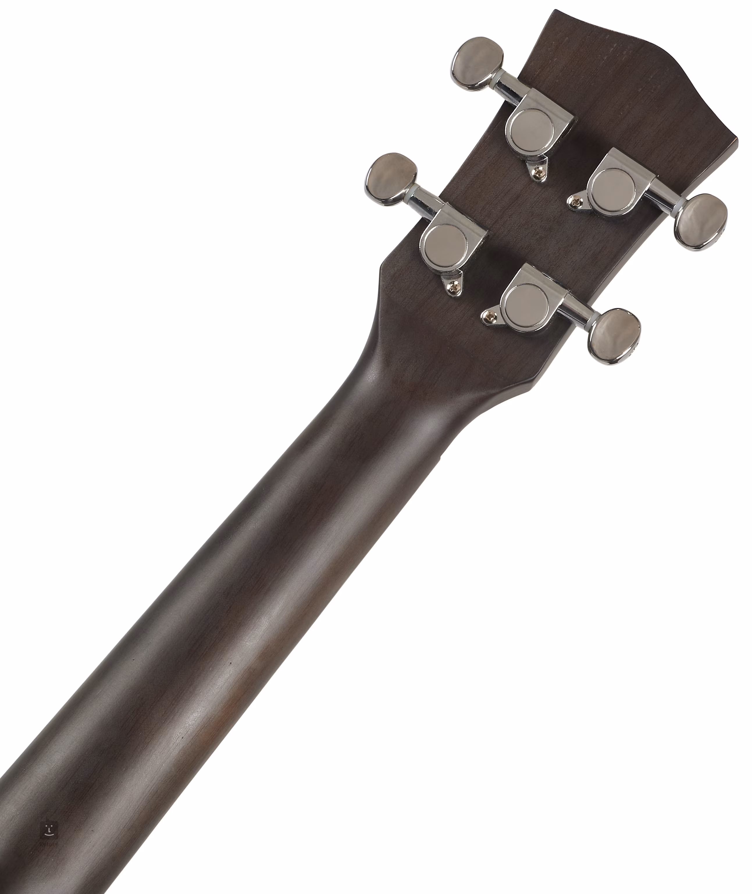 Blond BLO-110-24 Black to niedrogie ukulele akustyczne w rozmiarze koncertowym z laminowanym korpusem sapele. Palisander i podstrunnica wykonane są z indonezyjskiego palisandru (sonokeling).