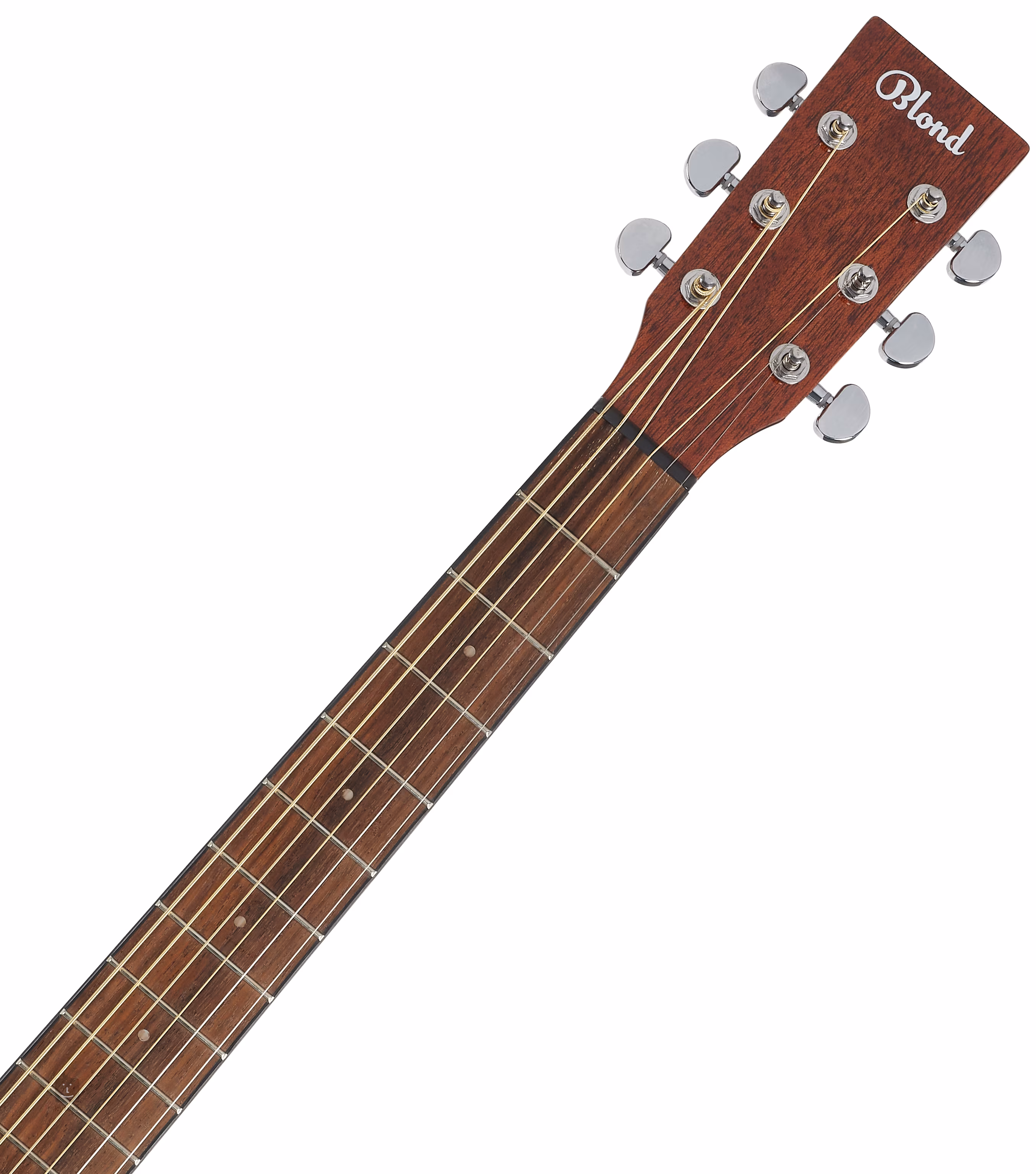 Blond D-SA MAH to gitara akustyczna z popularnym korpusem typu dreadnought wykonanym z laminowanego mahoniu. Gitara posiada również szyjkę z drewna okoumé, podstrunnicę z drewna figowego, praktyczne wycięcie w dolnej części korpusu oraz mocowanie strun nad progiem zerowym wykonane z utwardzonego materiału kompozytowego z cząsteczkami metalu (stal plastyczna) w mechanice chromowanego odlewu ciśnieniowego. Stylowe wykończenie podkreśla zastosowany błyszczący lakier i tradycyjne elementy w postaci czarnego wykończenia obwodowego (ABS) i rozety.
