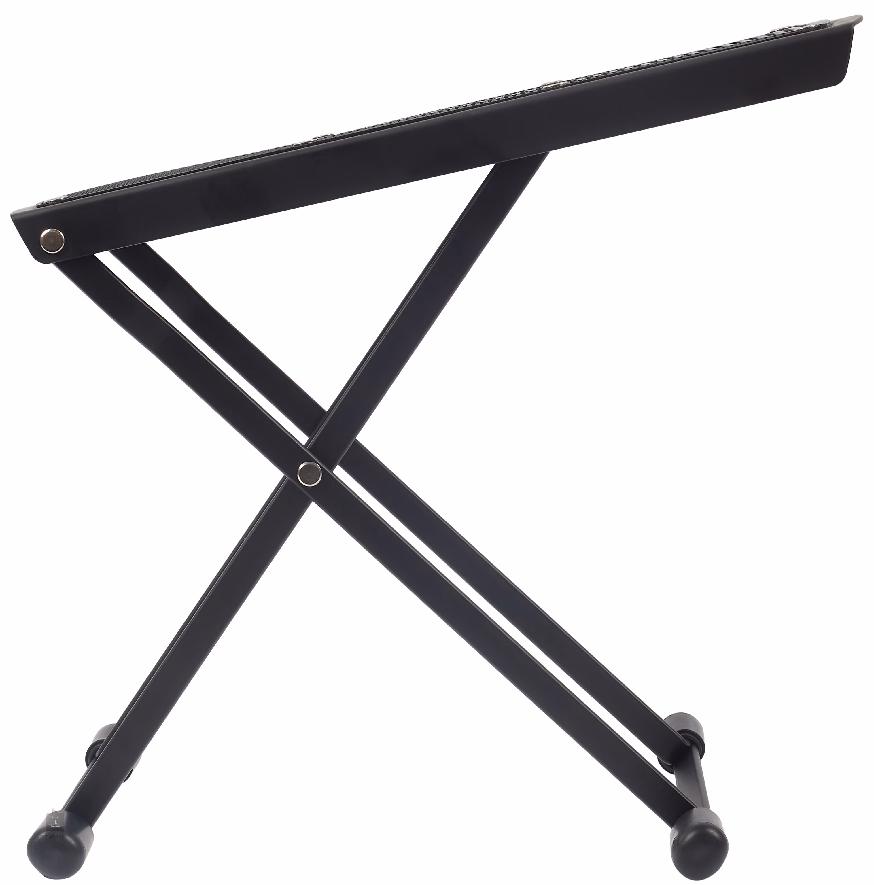 Metalowy podnóżek do gitary o regulowanej wysokości od 11,5 cm do 26 cm.