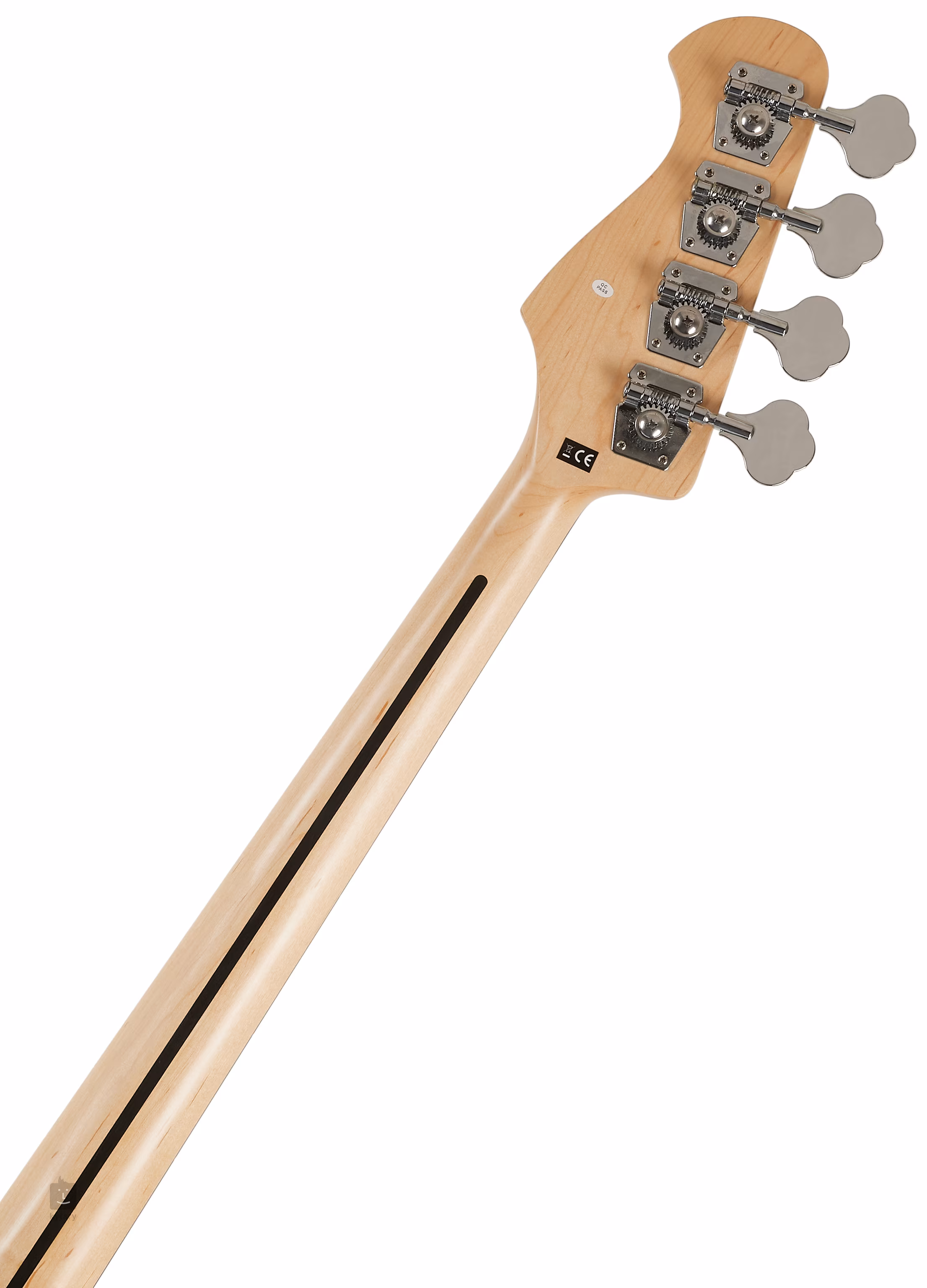 Bas elektryczny JAB-2 MN z serii Vintage marki Blond oferuje autentyczne brzmienie inspirowane legendarnymi nagraniami. Jesionowy korpus, pozostawiony w naturalnym kolorze, jest uzupełniony przykręcaną klonową szyjką z 20-palcową podstrunnicą i charakterystycznym tyłem Skunk Stripe. Czarne inkrustacje bloków i czarny binding szyjki nadają instrumentowi elegancki wygląd.