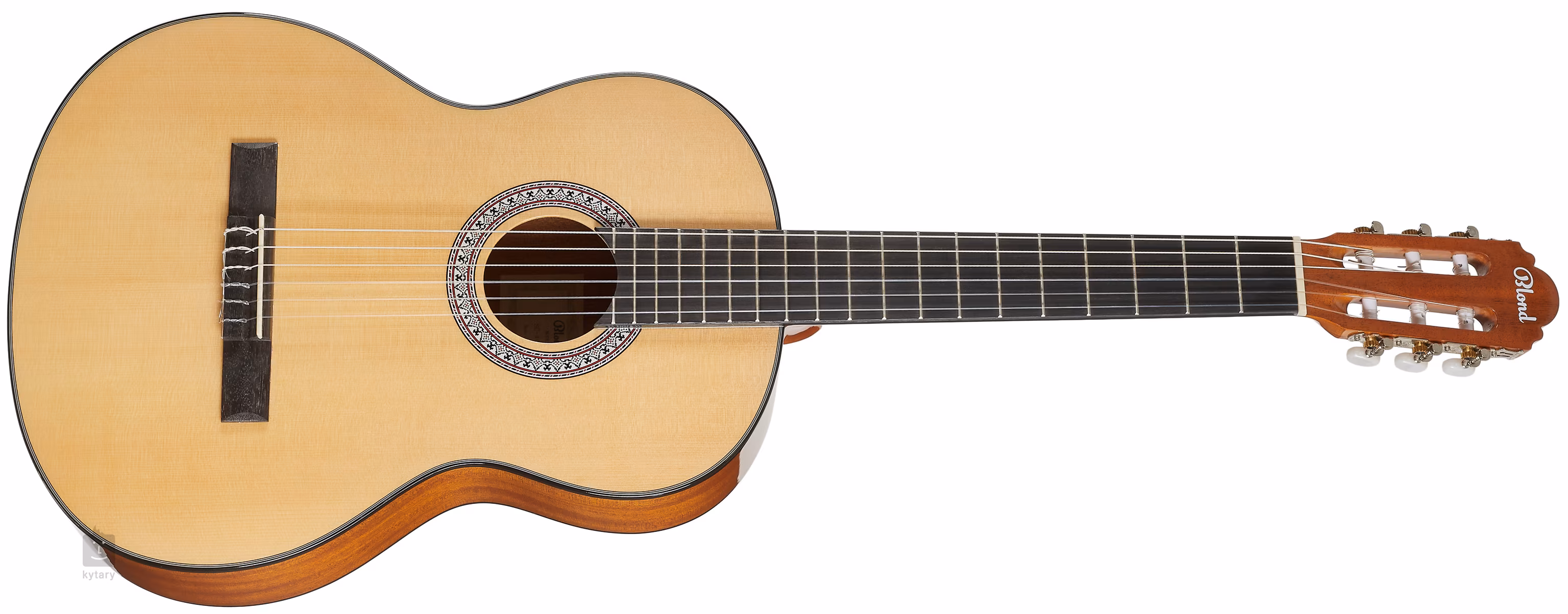 Gitara klasyczna Blond SC-44 M NAT w rozmiarze 4/4 posiada korpus wykonany z laminowanego świerku i mahoniu, mahoniową szyjkę i podstrunnicę oraz główkę wykonaną z nowoczesnego materiału kompozytowego. Struny są utrzymywane w klasycznej chromowanej mechanice za pomocą plastikowego progu zerowego. Stylowe wykończenie podkreśla zastosowany błyszczący lakier oraz tradycyjne elementy w postaci ozdobnych rozet i plastikowych wykończeń (ABS).