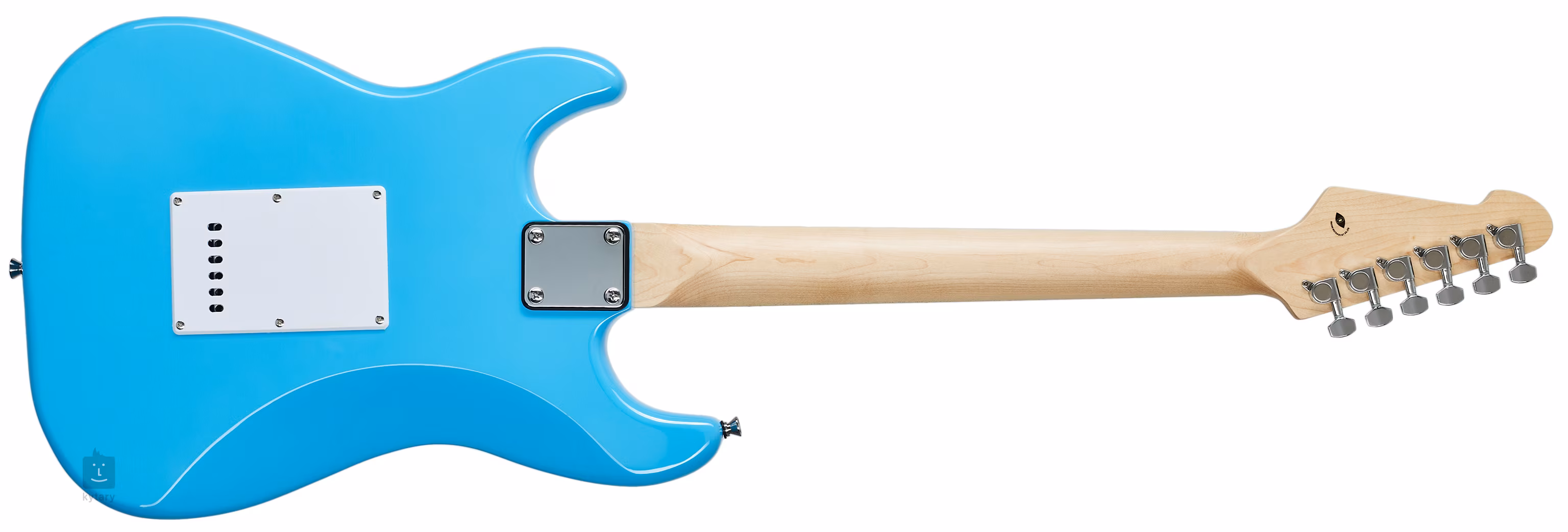 Struny są utrzymywane w odlewanych maszynkach do strojenia i zsynchronizowanym tremolo. Stylowe wykończenie podkreśla biały pickguard i chromowany osprzęt.