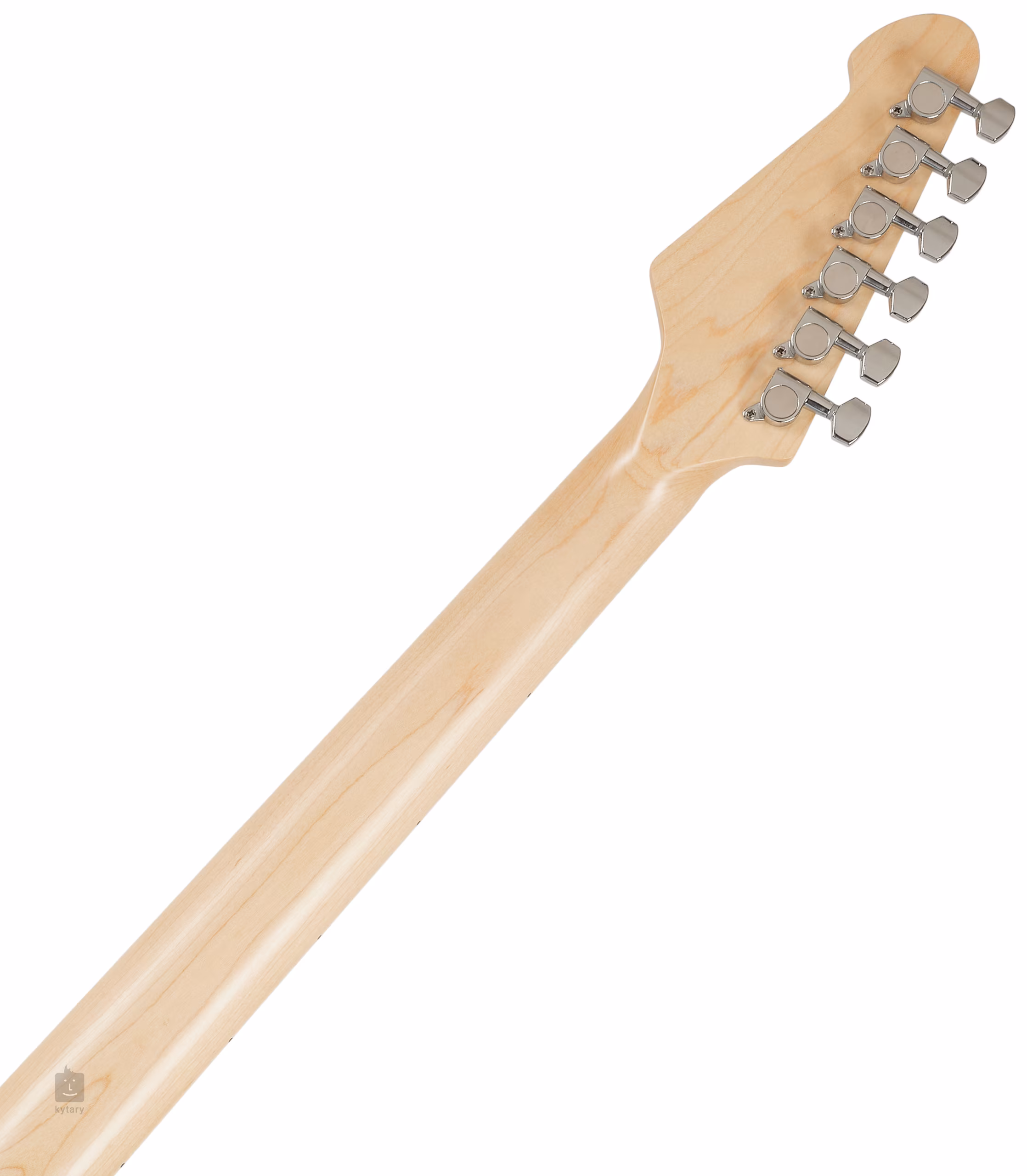 Struny są utrzymywane w odlewanych maszynkach do strojenia i zsynchronizowanym tremolo. Stylowe wykończenie podkreśla biały pickguard i chromowany osprzęt.