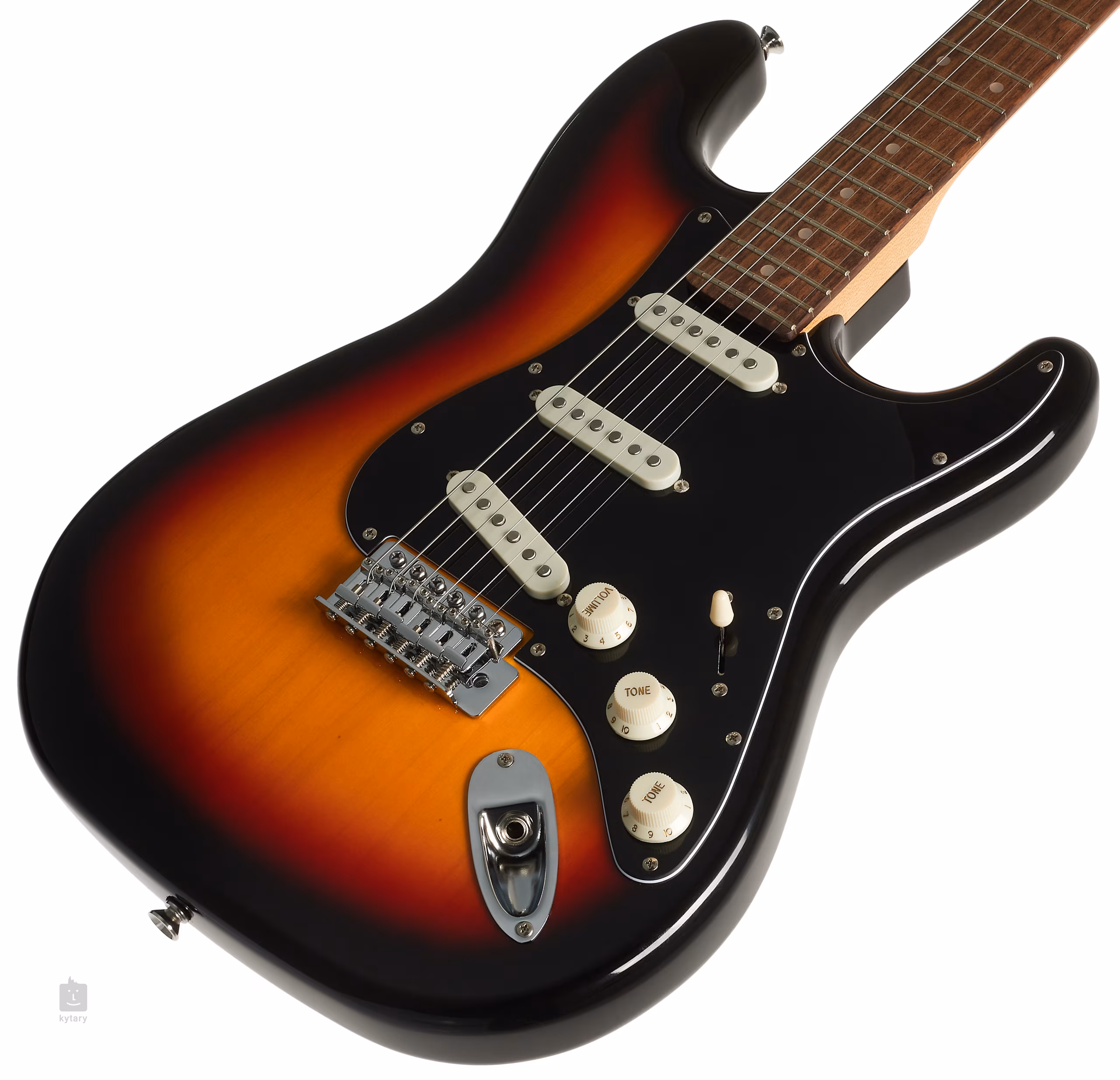Trzy przetworniki typu single-coil z magnesami Alnico V nadają gitarze klasyczne brzmienie modeli ST. Dostosuj charakter brzmienia za pomocą regulacji tonów, regulacji głośności i pięciopozycyjnego przełącznika przetworników. Struny zamontowane są w firmowych maszynkach do strojenia i zsynchronizowanym tremolo. Stylowe wykończenie podkreśla czarny pickguard i chromowany osprzęt.