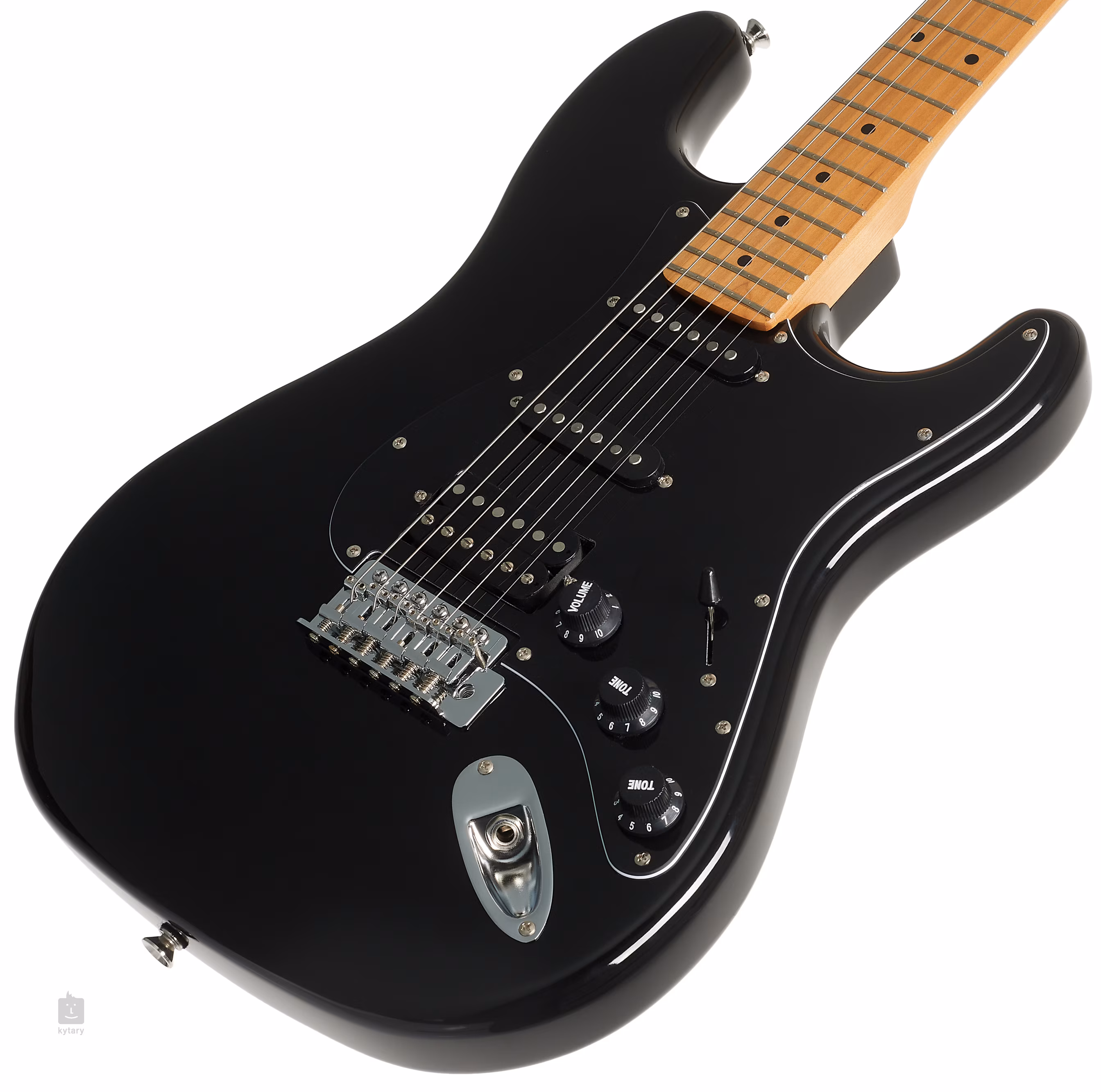 Połączenie humbuckera typu cobbler i dwóch przetworników ST typu single-coil z magnesami Alnico V daje gitarze zarówno klasyczne czyste brzmienia i drive/crunch single-coili, jak i pełne rockowe brzmienie humbuckerów. Dostosuj jego charakter za pomocą migawki tonu, głośności i pięciopozycyjnego przełącznika pickupów. Struny są zamontowane w firmowych maszynkach do strojenia i zsynchronizowanym tremolo. Stylowe wykończenie podkreśla czarny pickguard i chromowany osprzęt.