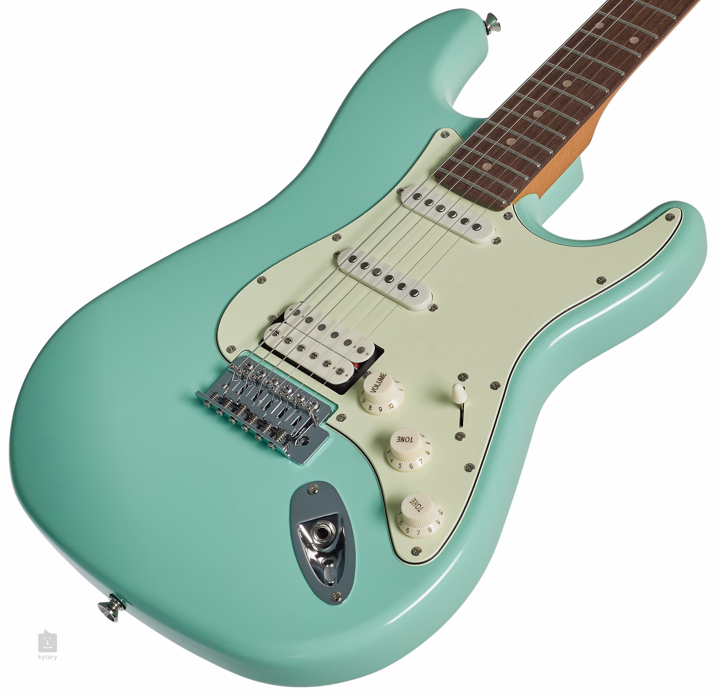 Połączenie humbuckera typu cobbler i dwóch przetworników ST typu single-coil z magnesami Alnico V daje gitarze zarówno klasyczne czyste brzmienia i drive/crunch pojedynczych cewek, jak i pełne rockowe brzmienie humbuckerów. Dostosuj jego charakter za pomocą regulacji tonów, regulacji głośności i pięciopozycyjnego przełącznika przetworników. Struny są zamontowane w firmowych maszynkach do strojenia i zsynchronizowanym tremolo. Stylowe wykończenie podkreśla chromowany osprzęt.