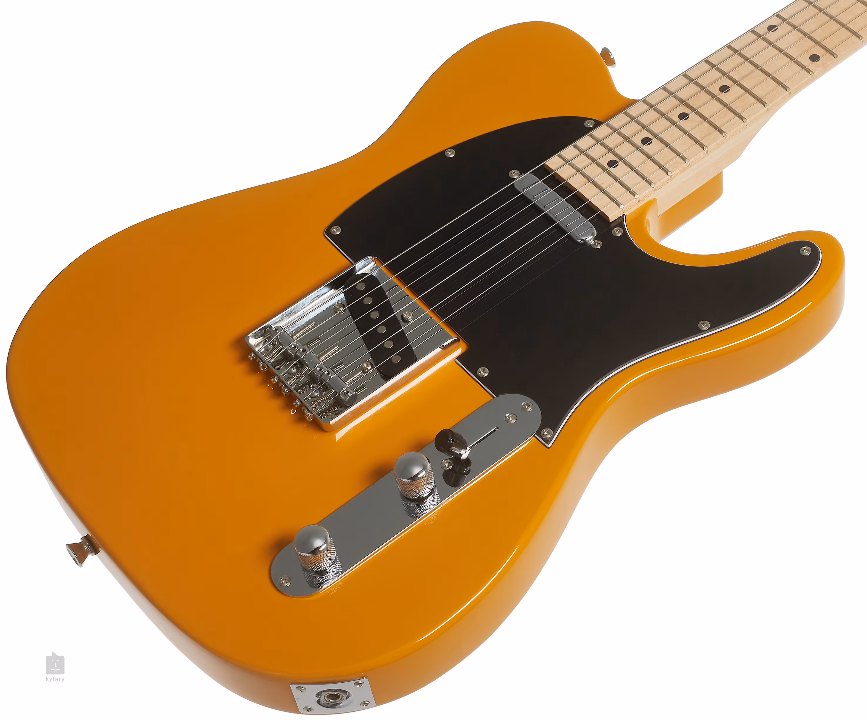 Struny są trzymane w odlewanych maszynkach do strojenia i przez mostek "popielniczka" w stylu T przez korpus gitary. Stylowe wykończenie podkreśla czarny pickguard i chromowany osprzęt.