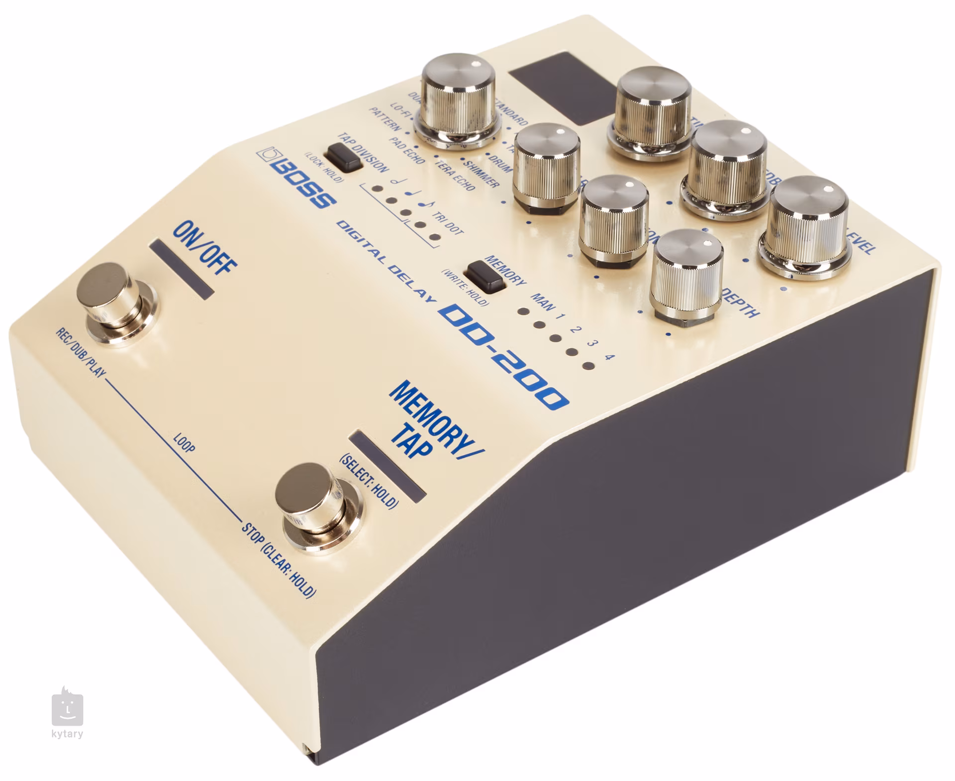 W przypadku efektu DD-200 maksymalnie docenisz wielofunkcyjne przełączniki nożne, które oprócz wyłączania/włączania efektu oferują funkcję Tap Tempo (z podziałami rytmicznymi w interwałach półnutowych, ćwierćnutowych i ósemkowych oraz ich wariacjami z kropką i w triolecie), Looper o pojemności 60 sekund czasu nagrywania oraz możliwość przypisania dodatkowych funkcji (Hold, Warp). Prawy przełącznik nożny może być również używany do przełączania między czterema pamięciami, w których można łatwo zapisać, a następnie przywołać ulubione ustawienia wstępne.