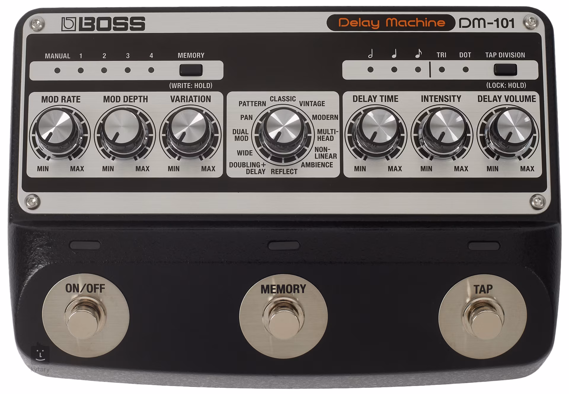 • Sterowanie 3x FS (On/Off, Memory, Tap), Mod Rate, Mod Depth, Variation, Delay Select, DelayTome, Intensity, Delay Volume, Memory, Tap Division