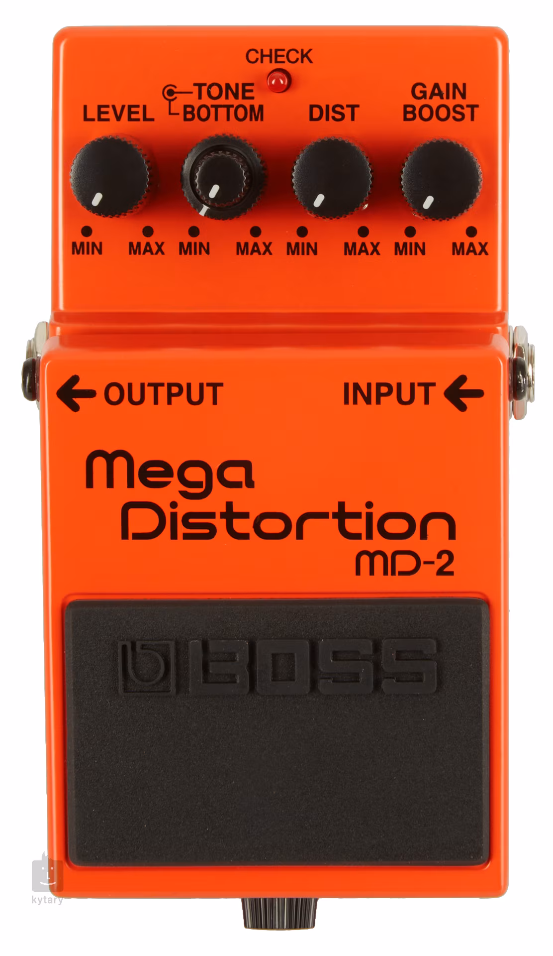 Boss MD-2 Mega Distortion to kolejny z serii efektów zniekształcających firmy Boss. Oferuje on wielostopniowe zniekształcenie, z tradycyjną kontrolą Distortion uzupełnioną o Gain Boost. Jego usługi docenią szczególnie gracze gatunków metalowych. Dwupasmowy korektor z regulatorami Tone i Bottom umożliwia dostosowanie charakteru brzmienia do własnych upodobań, w tym dodanie znacznych niskich tonów w celu uzyskania naprawdę gęstego brzmienia. Pozostały potencjometr Level określa głośność wyjściową.