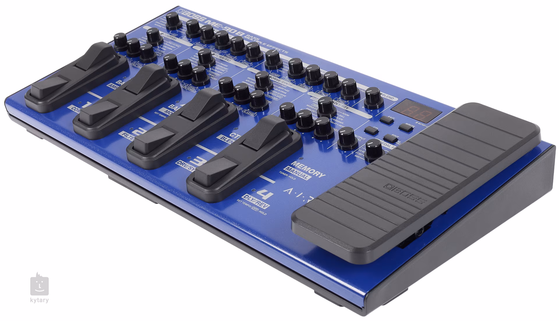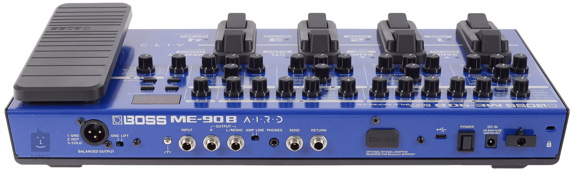 Multiefekt gitarowy BOSS ME-90B to najbardziej zaawansowany model w wieloletniej serii BOSS ME. Oferuje wyjątkową jakość dźwięku dzięki 24-bitowym przetwornikom AD/DA, 32-bitowemu procesorowi zmiennoprzecinkowemu i częstotliwości próbkowania 48 kHz, dziesięciu wbudowanym modelom przedwzmacniaczy AIRD i 61 różnym efektom z biblioteki efektów basowych Boss, ładowaniu IR, pętli efektów, łatwemu tworzeniu dźwięków efektów w stylu pedału z intuicyjnym interfejsem, dedykowana sekcja wzmacniacza i siedem bloków efektów, które mogą być używane jednocześnie, osiem wielofunkcyjnych przełączników nożnych, nowo przeprojektowany pedał ekspresji, 36 presetów/patchy i 36 presetów/patchy użytkownika do zapisywania własnych ustawień.