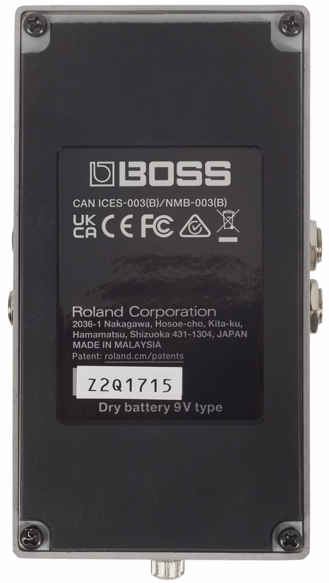 Efekt pedału jest podłączony jako buforowany bypass. Do zasilania wymagana jest tylko bateria 9V lub adapter 9V (adapter nie jest dołączony).