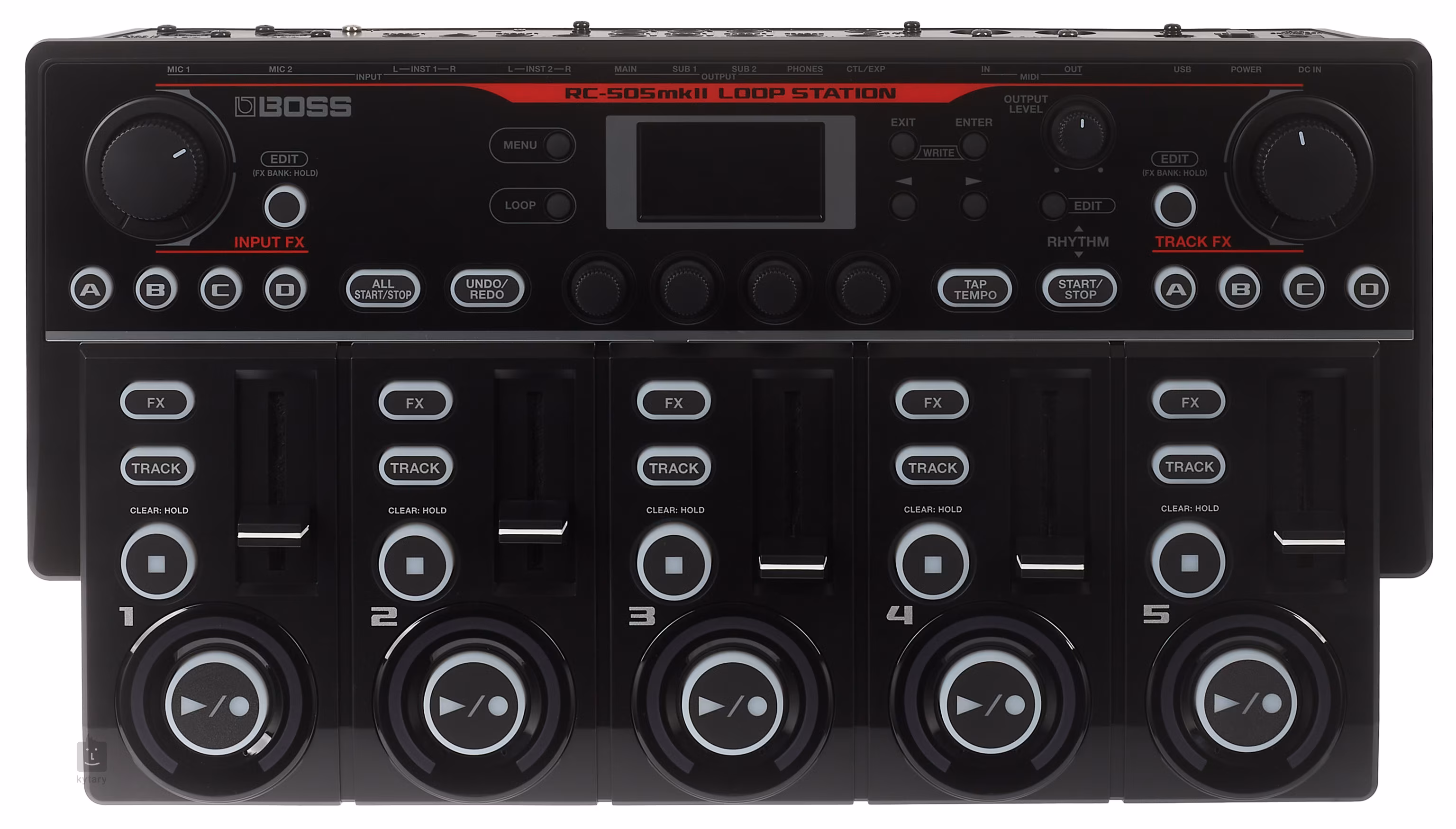 • Sterowanie Track 1-5, Mic/Inst Level, Output Level, Effects On/Off, Tap Tempo, Rhytm On/Off, Memory/Value, Write