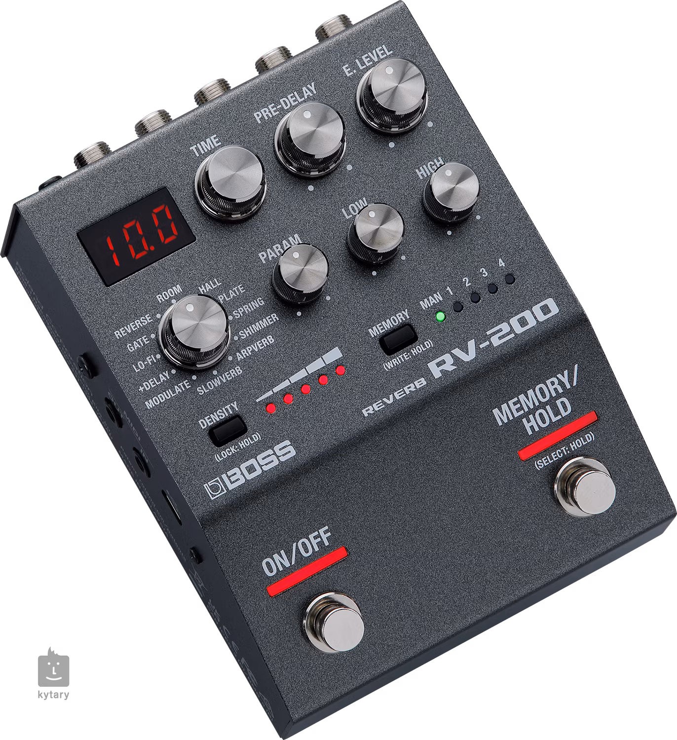 2x FS (On/Off, Memory/Hold), Time, Pre-Delay, E. Level, Reverb Type, Param, Low, High, Density, Memory