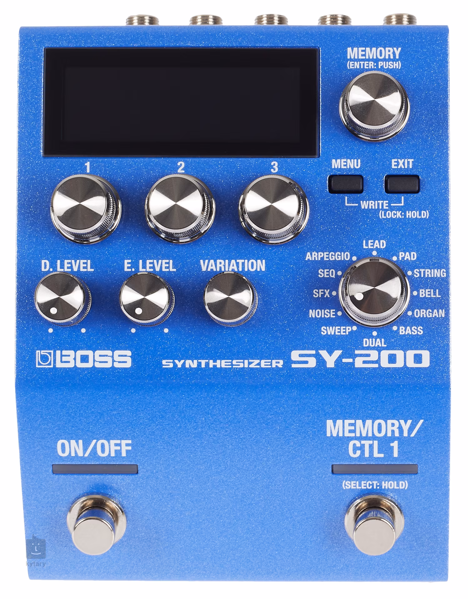 SY-200 posiada dwanaście analogowych brzmień z trzema parametrami do tworzenia unikalnego dźwięku. Możesz stworzyć do 171 różnych wariacji z tymi dźwiękami, dzięki czemu zawsze możesz dostosować efekt do swoich preferencji i potrzeb. Brzmienie można następnie zapisać w jednym ze 128 presetów. Główny panel sterowania oferuje czytelny wyświetlacz z pokrętłami, dwoma przełącznikami nożnymi i przełącznikiem dla 12 dźwięków syntezatora. Po bokach i z tyłu znajdują się elastyczne złącza z wejściem i wyjściem liniowym, pętlą efektów, wejściem/wyjściem MIDI, wejściem pedału ekspresji i portem USB do podłączenia komputera PC lub laptopa (tylko w celu aktualizacji oprogramowania układowego). W zestawie 4x baterie AA.