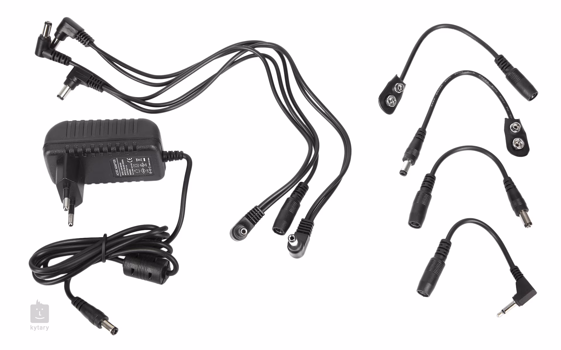 Caline CP-07A to zasilacz 9V z zestawem kabli połączeniowych, który zapewnia zasilanie do pięciu efektów gitarowych przy napięciu 9V (całkowity maksymalny pobór to 1000 mA). W zestawie znajduje się łańcuchowy interkonekt z pięcioma złączami, kabel odwracający polaryzację, reduktor wtyczki 3,5 mm oraz dwa kable do podłączenia efektów wymagających baterii 9V (np. Line 6, RAT, pedały EH i inne).
