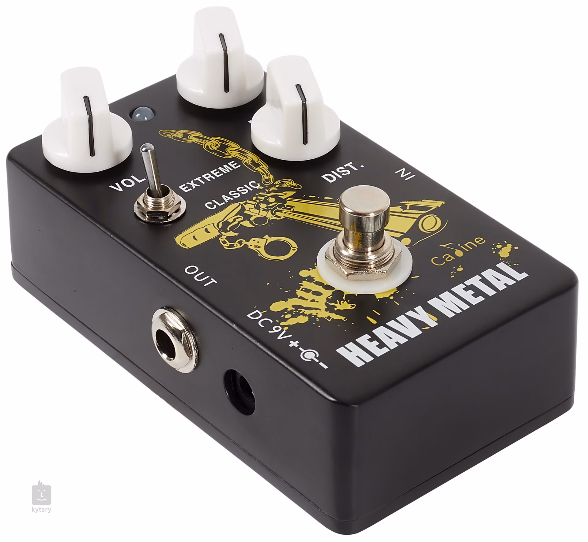 CP-77 Heavy Metal rozszerza linię kompaktowych efektów gitarowych typu distortion chińskiej marki Caline. W tym przypadku jest to hi-gainowy distortion box przeznaczony (pomimo niuansu w nazwie samego efektu) dla fanów gatunków metalowych. Standardowe pokrętła regulacji głośności, poziomu zniekształceń i średnich tonów zostały uzupełnione o przełącznik trybu Classic i Extreme, który rozszerza arsenał brzmieniowy skrzynki. Cała elektronika umieszczona jest w wytrzymałej aluminiowej obudowie, a efekt działa w trybie true bypass. Zasilanie zapewnia zasilacz 9V lub bateria 9V.