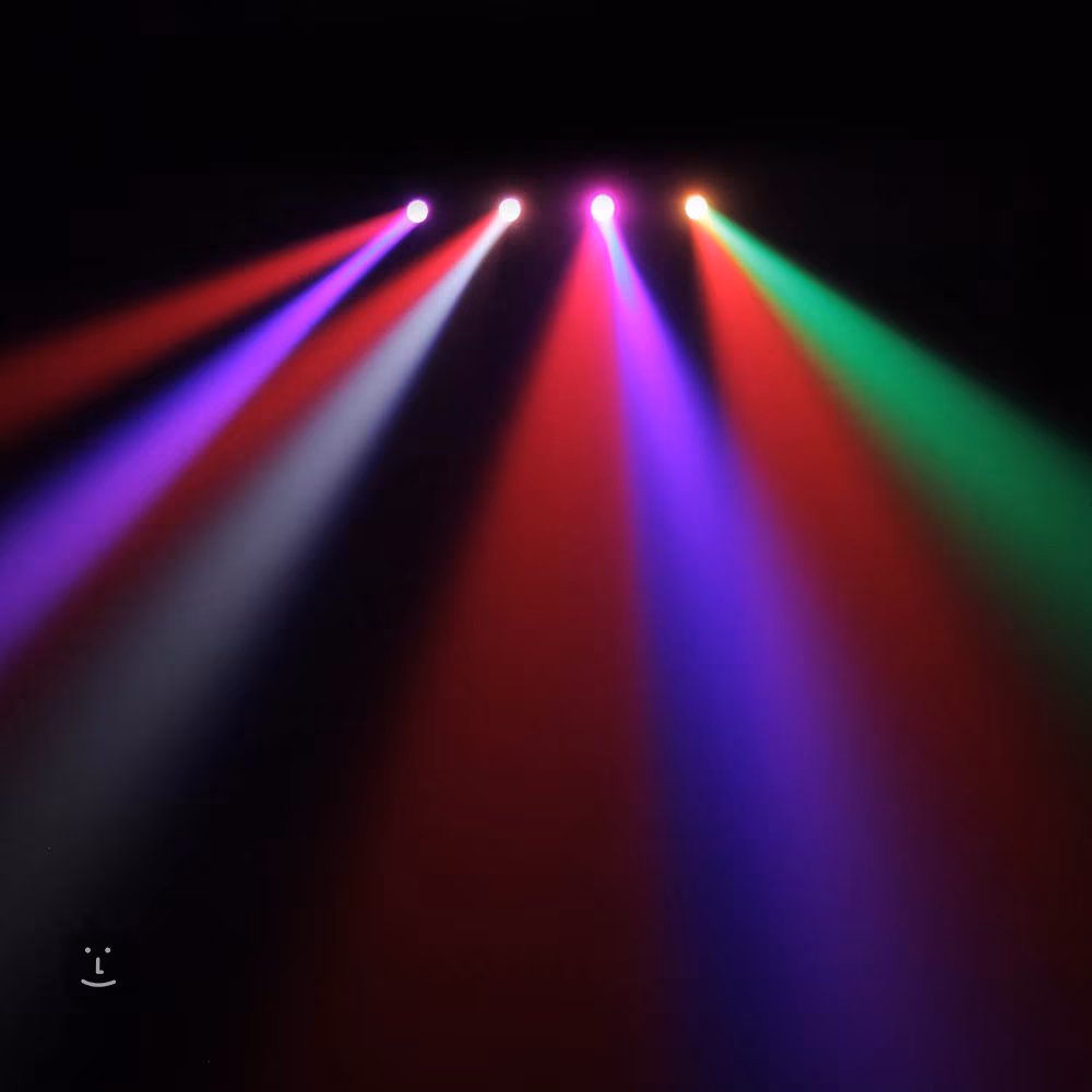 Każda głowica obrotowa jest wyposażona w pojedynczą diodę LED RGBW o mocy 10 W, co pozwala na uzyskanie szerokiej gamy kolorów. Funkcje obrotu (540°) i pochylenia (270°) zapewniają duży zakres mobilności oprawy, a kąt wiązki 4,5° zapewnia wytwarzanie ostrej i skupionej wiązki. Dostępny jest również tłumik światła i szybki efekt stroboskopowy 20 Hz.