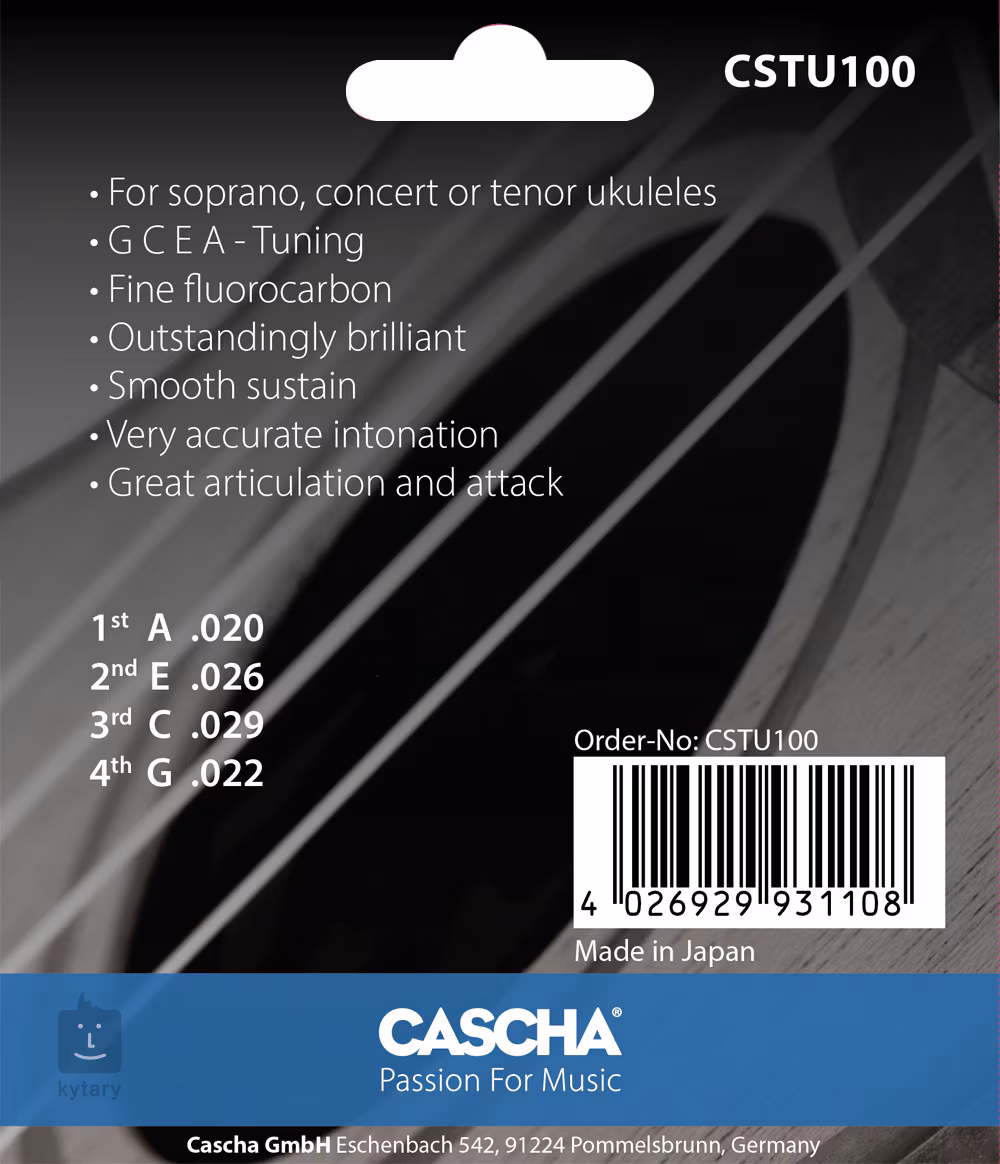 Karbonowe struny Cascha są odpowiednie dla wszystkich graczy ukulele, którzy kładą nacisk na jakość dźwięku. Wykonane są z wysokiej jakości fluorocarbonu, który zapewnia ciepły i czysty ton, długi sustain i precyzyjną intonację. Zrównoważona twardość sprawia, że doskonale stroją we wszystkich pozycjach. Zestaw nadaje się do ukuleli sopranowych, koncertowych i tenorowych.