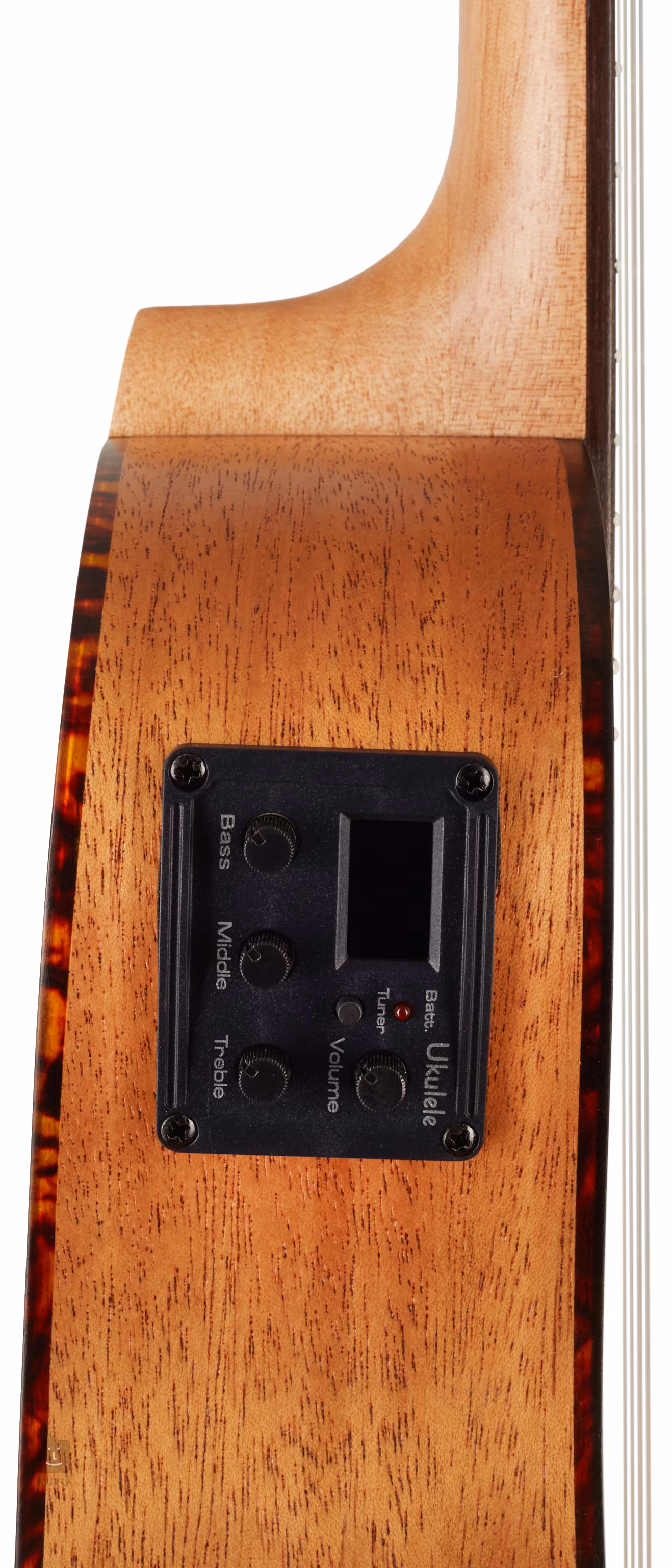 Korpus ukulele wykonany jest z mahoniu. Palisandrowa podstrunnica podzielona jest szesnastoma progami (z tego samego materiału wykonana jest podstrunnica). Struny są zamontowane w chromowanych maszynkach do strojenia typu gitarowego. Ładne wykonanie podkreśla rozeta i dwustronne wykończenie korpusu wykonane z imitacji skorupy żółwia.