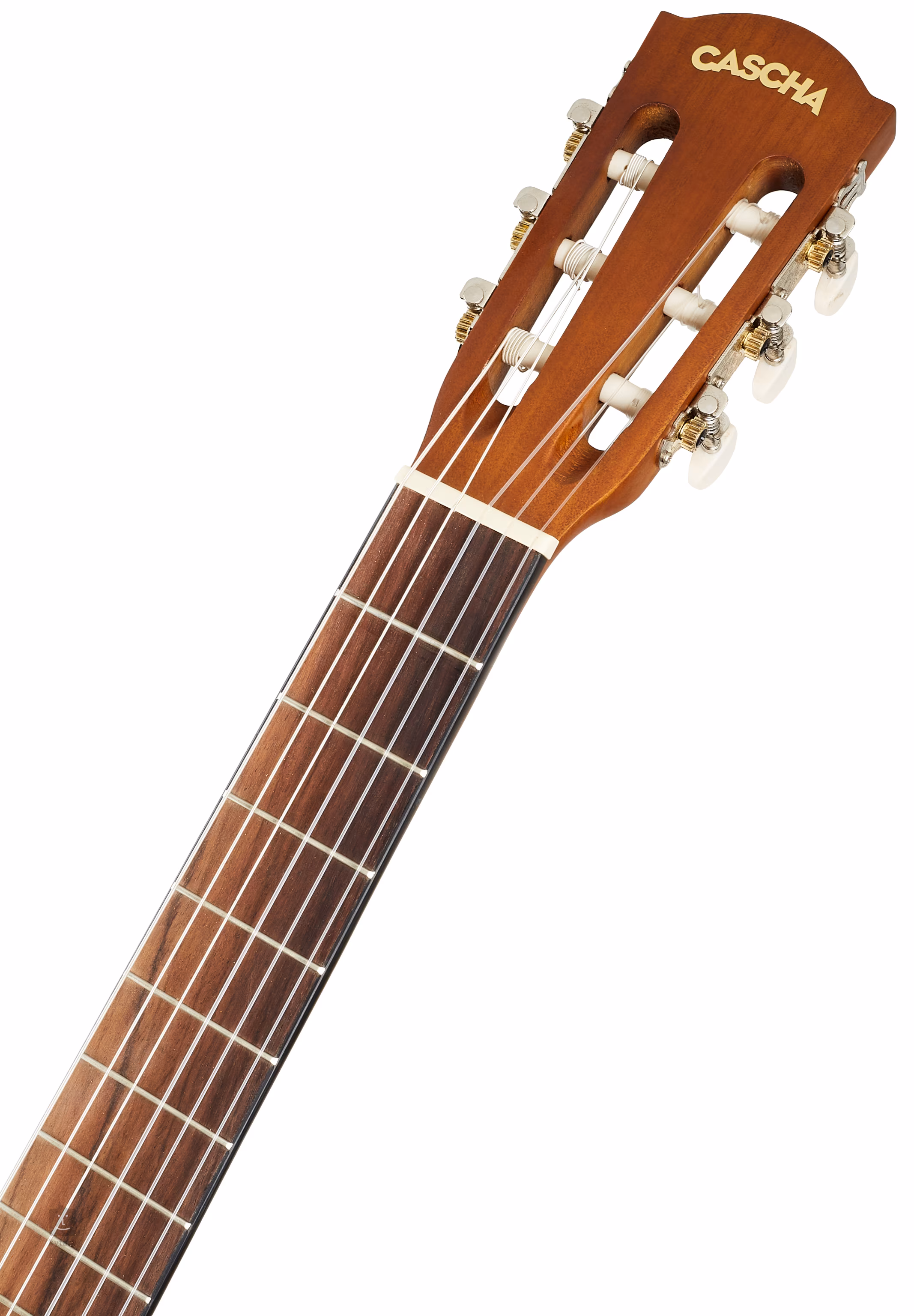 Gitara klasyczna Cascha Student Series to niedrogi instrument odpowiedni dla zupełnie początkujących. Płyta przednia wykonana jest z drewna świerkowego, tył i boki z drewna lipowego. Do szyjki z drewna okoumé przyklejona jest podstrunnica z kompozytu z osiemnastoma progami. Struny zamontowane są w klasycznej mechanice otwartej. Surowy design gitary podkreśla ozdobna rozeta.