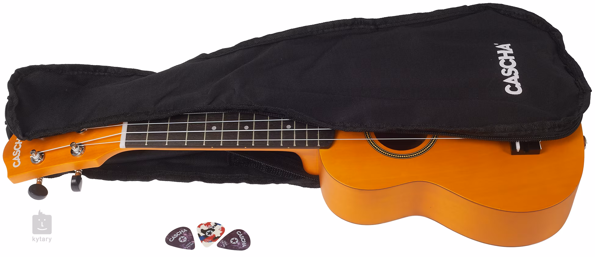 Ukulele sopranowe Cascha Yellow to niedrogi instrument odpowiedni dla dzieci i początkujących. Wraz z ukulele otrzymujesz poręczny futerał i trzy kostki, dzięki czemu możesz natychmiast wyruszyć na zabawę nad wodą, skałami, morzem... gdziekolwiek mieszkasz.