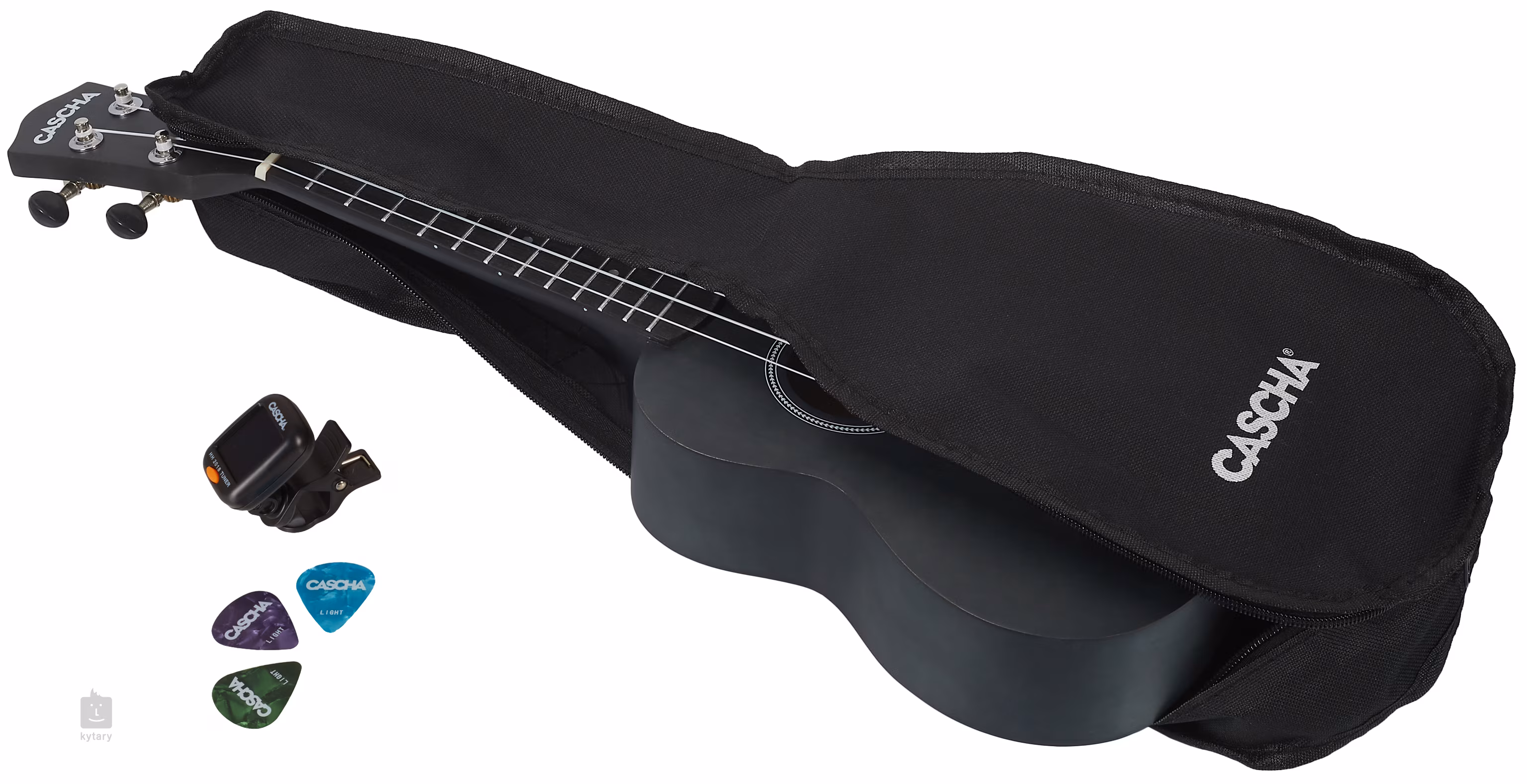 Ukulele sopranowe Cascha Black to przystępny cenowo instrument odpowiedni dla dzieci i zupełnie początkujących. W ramach tego pakietu startowego otrzymasz poręczny futerał, trzy kostki, lekcję gry na ukulele w czterech językach: angielskim, niemieckim, francuskim i hiszpańskim oraz przypinany tuner (do zasilania tunera wymagana jest bateria litowa CR2032).