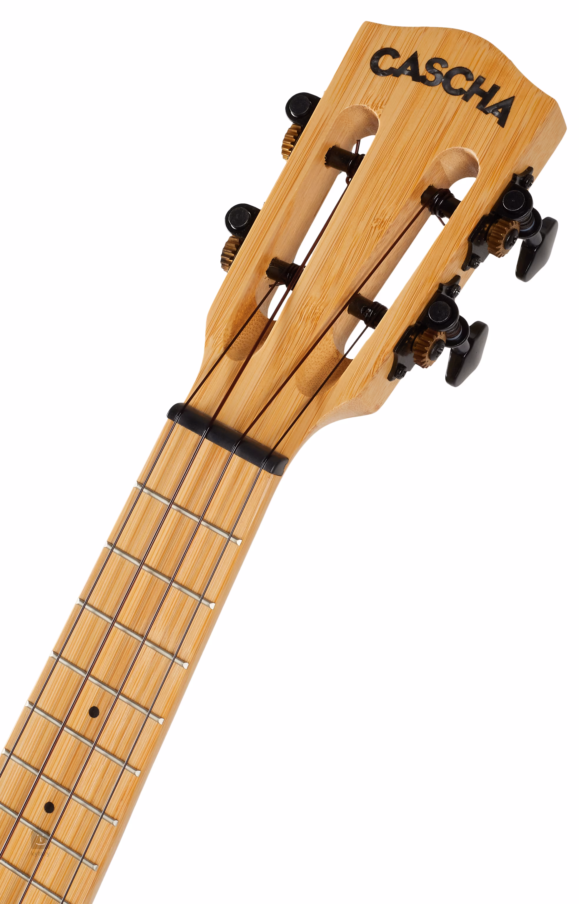 Ukulele sopranowe Bamboo Natural marki Cascha to instrument wykonany niemal w całości z bambusa. Naturalne usłojenie drewna nadaje ukulele wyrafinowany wygląd. Oprócz solidnego bambusowego korpusu i szyjki, bambusowa podstrunnica i podstrunnica oferują również wzmocnienie dźwięku dzięki wbudowanemu przedwzmacniaczowi z trzypasmowym korektorem i tunerem.