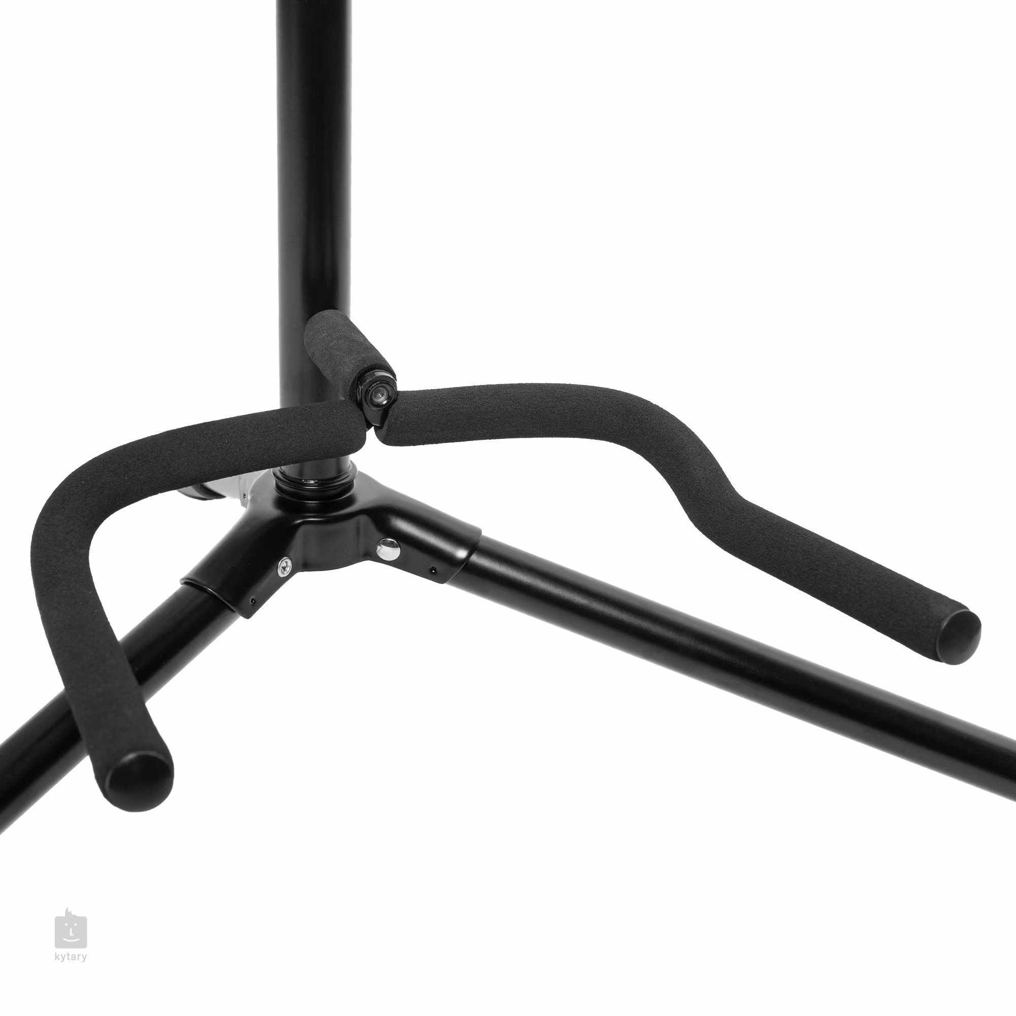 Statyw gitarowy Tripod firmy Cascha zapewnia optymalną powierzchnię do bezpiecznego przechowywania gitary. Wykonany z wytrzymałego metalu stojak zapewnia stabilność dzięki trzem nogom z antypoślizgowymi gumowymi stopkami. Gitara jest solidnie przymocowana do stojaka, a wyściółka z pianki EVA na powierzchniach nośnych zapobiega zarysowaniu instrumentu, zapewniając bezpieczne przechowywanie gitary akustycznej lub elektrycznej. Dodatkowo, górna blokada zapobiega spadnięciu gitary ze stojaka.