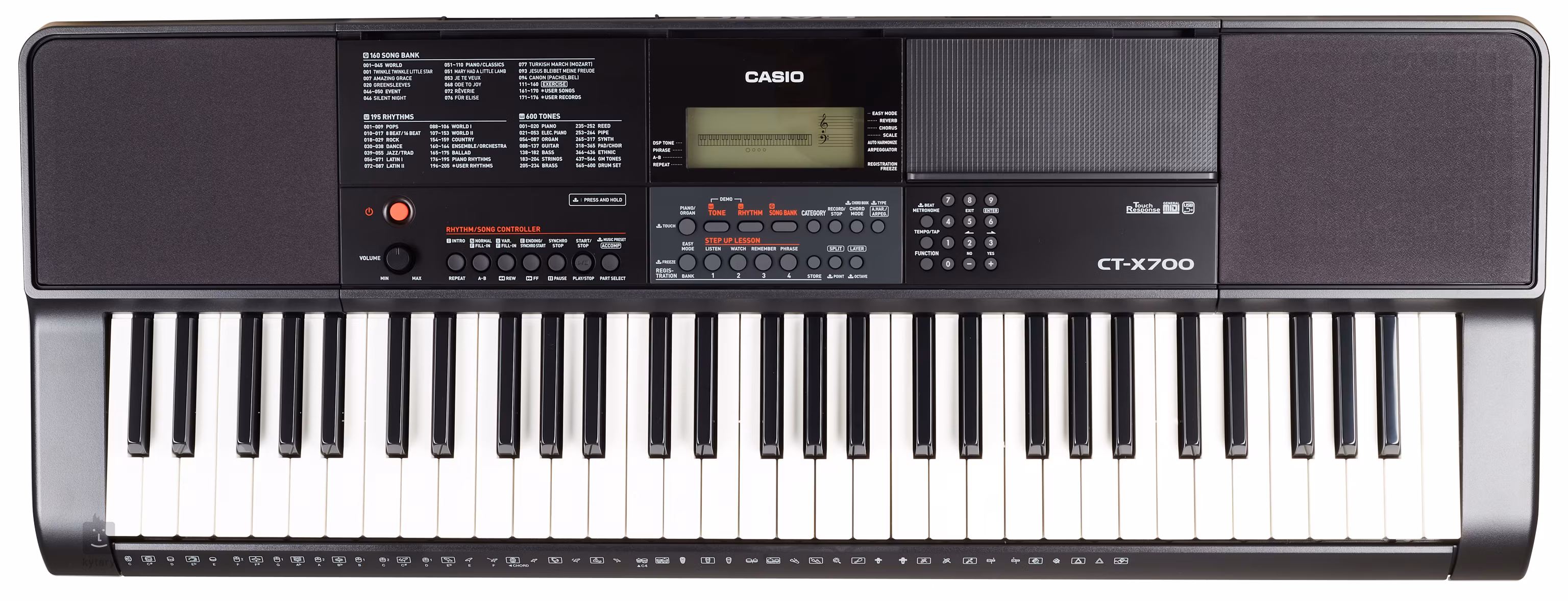 Casio CT-X700 to wszechstronny keyboard, który zaskakuje bardzo zaawansowanym brzmieniem porównywalnym z dużo droższymi instrumentami w swoim przedziale cenowym. Oprócz starannie nagranego koncertowego fortepianu, dostępnych jest ponad 600 różnych instrumentów, w tym zabytkowe pianina elektryczne, flet, trąbka, saksofon, bas i smyczki. Instrumenty reagują na dynamikę gry, więc brzmienie np. kontrabasu zmienia się w podobny sposób jak technika ręki, a saksofon ma naturalne vibrato.
