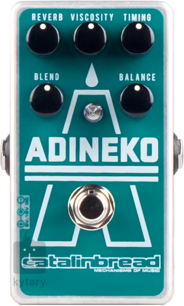 Efekt pedałowy Catalinbread ADINEKO emuluje stary sprzęt opóźniający produkowany przez Tel-Ray/Morley. Dzięki połączeniu mrocznie brzmiącego echa z modulacją vibrato i efektem delay (maksymalny czas opóźnienia 1000 ms) stworzysz prawdziwie tajemnicze, drżące dźwięki i pejzaże dźwiękowe znane np. ze starych włoskich westernów. Cała elektronika efektu ukryta jest w solidnej metalowej obudowie. Catalinbread ADINEKO jest podłączony jako prawdziwy bypass. Do zasilania wymagany jest adapter 9-18V.